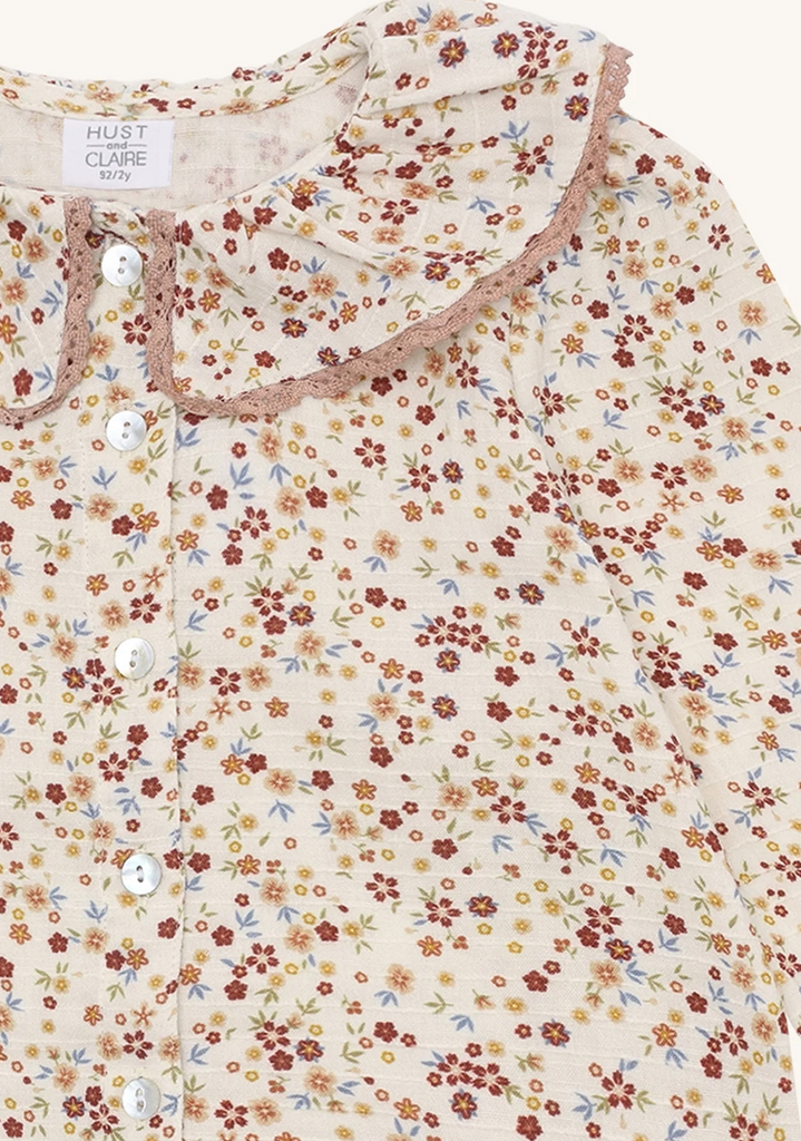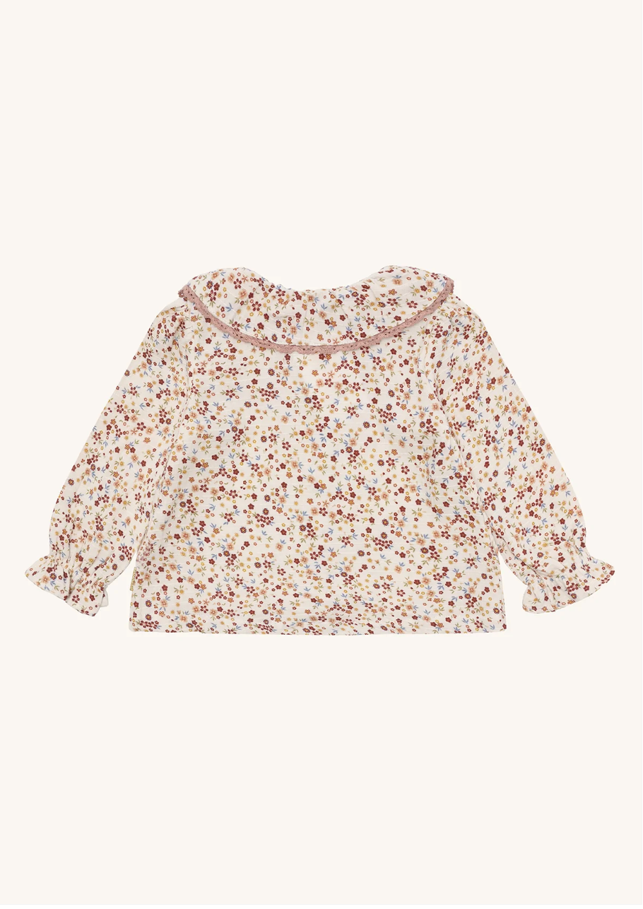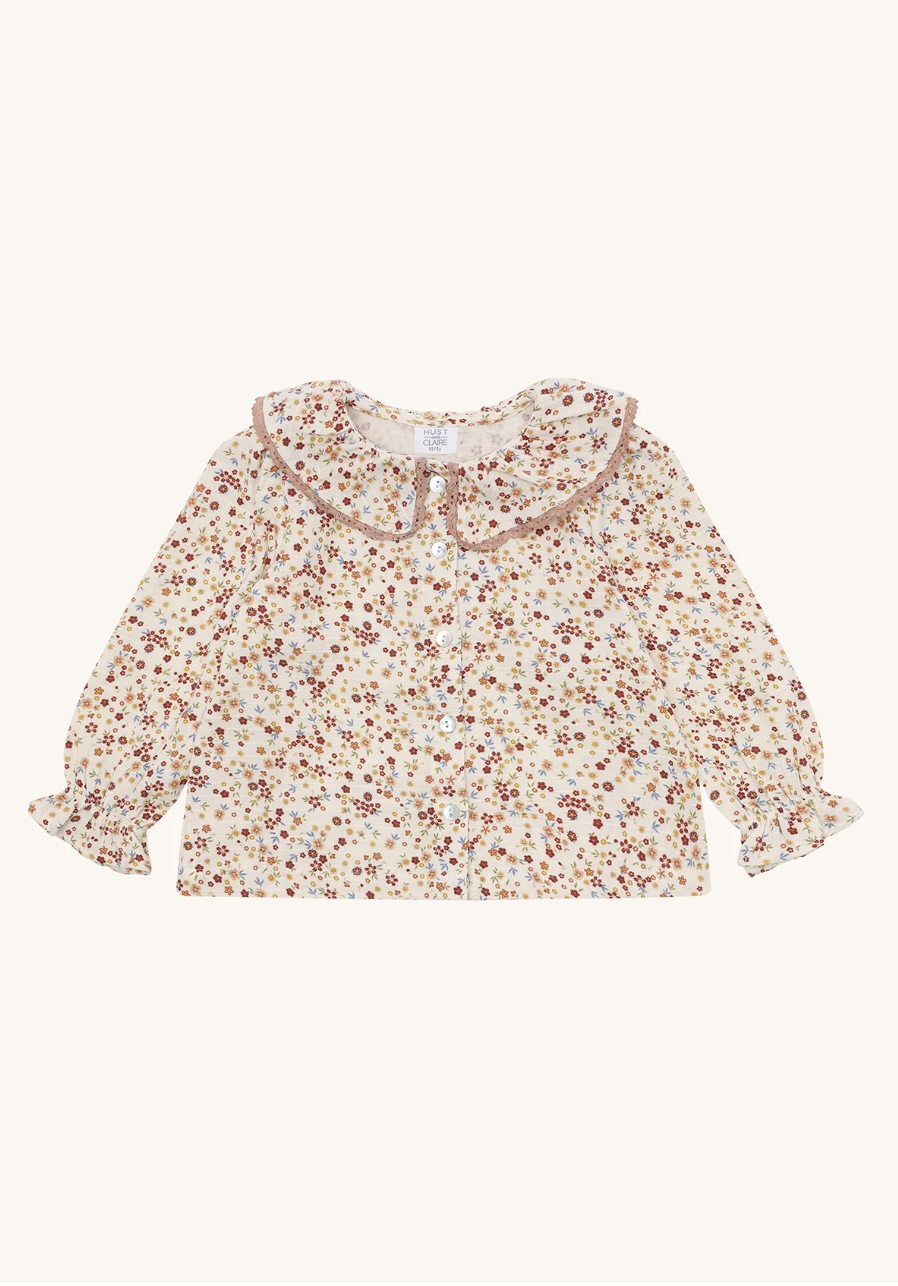 Nydelig bluse i en deilig bomull blanding. Blusen er en stor og fin krage med en brodert kant. Bluseen har knepping i front som gjør det enkelt å ta en av og på.