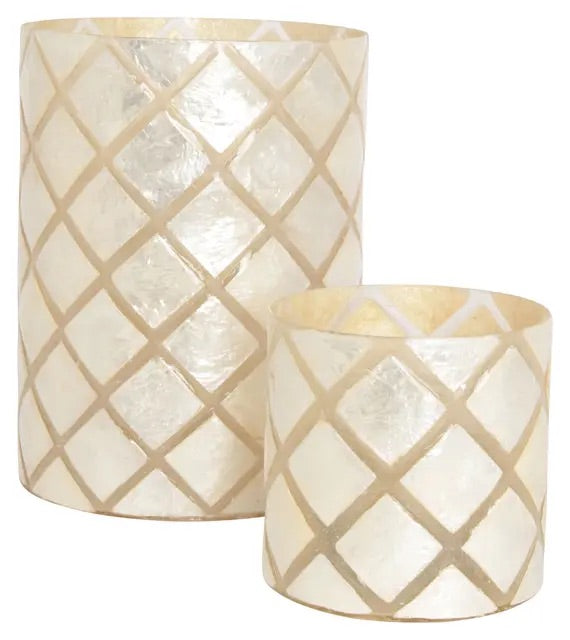 Halvor bakke - Varca Rutet Telysholder Hvit/Creme Capiz, ø15 -