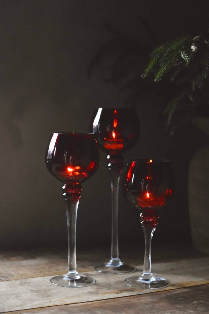 Trend Design - Lysglass På Stett Rundt H 25 Cm Rød -