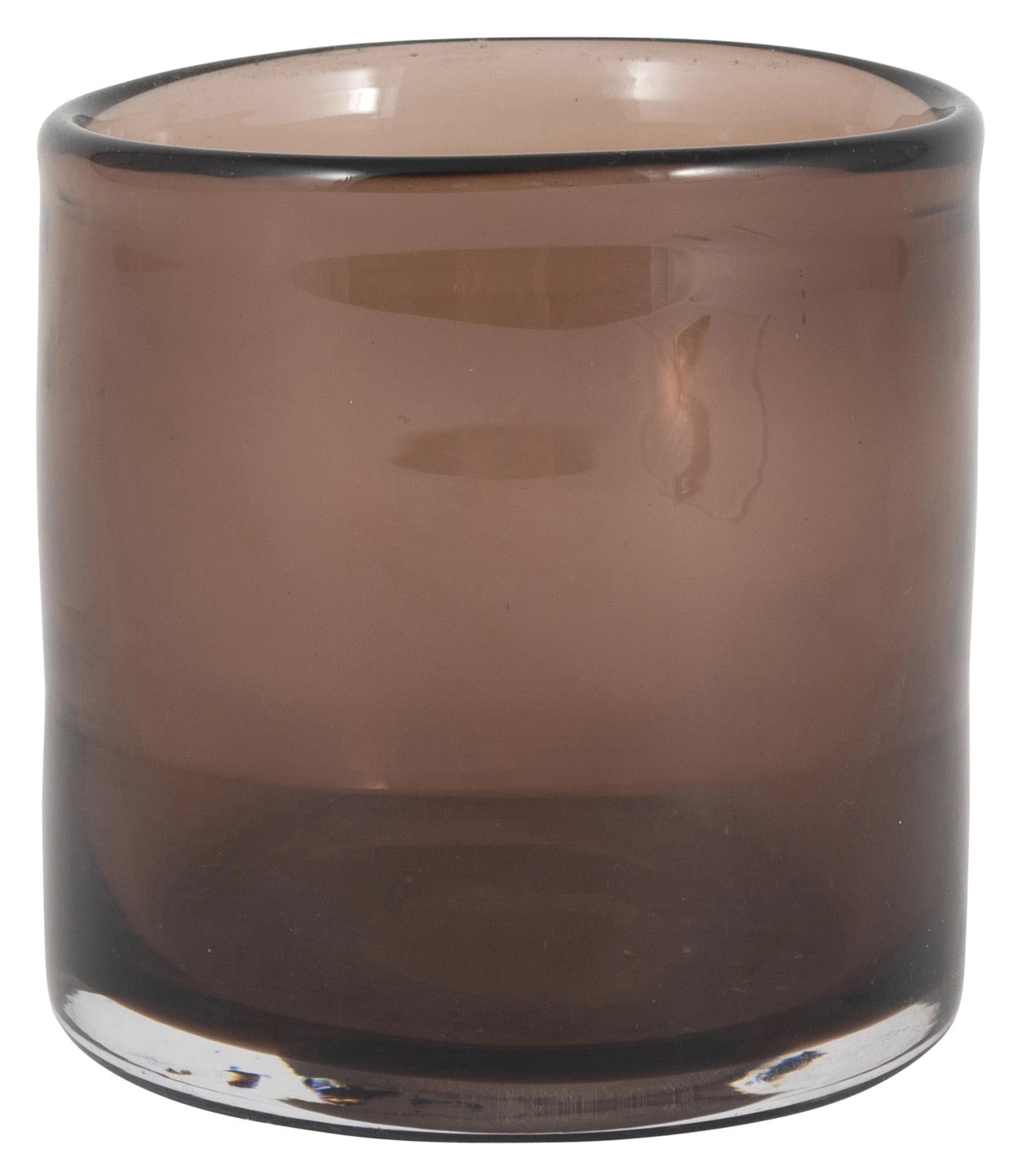 Håndlaget lyslykt av farget glass i en lett bruntone. Kan også brukes som vase.