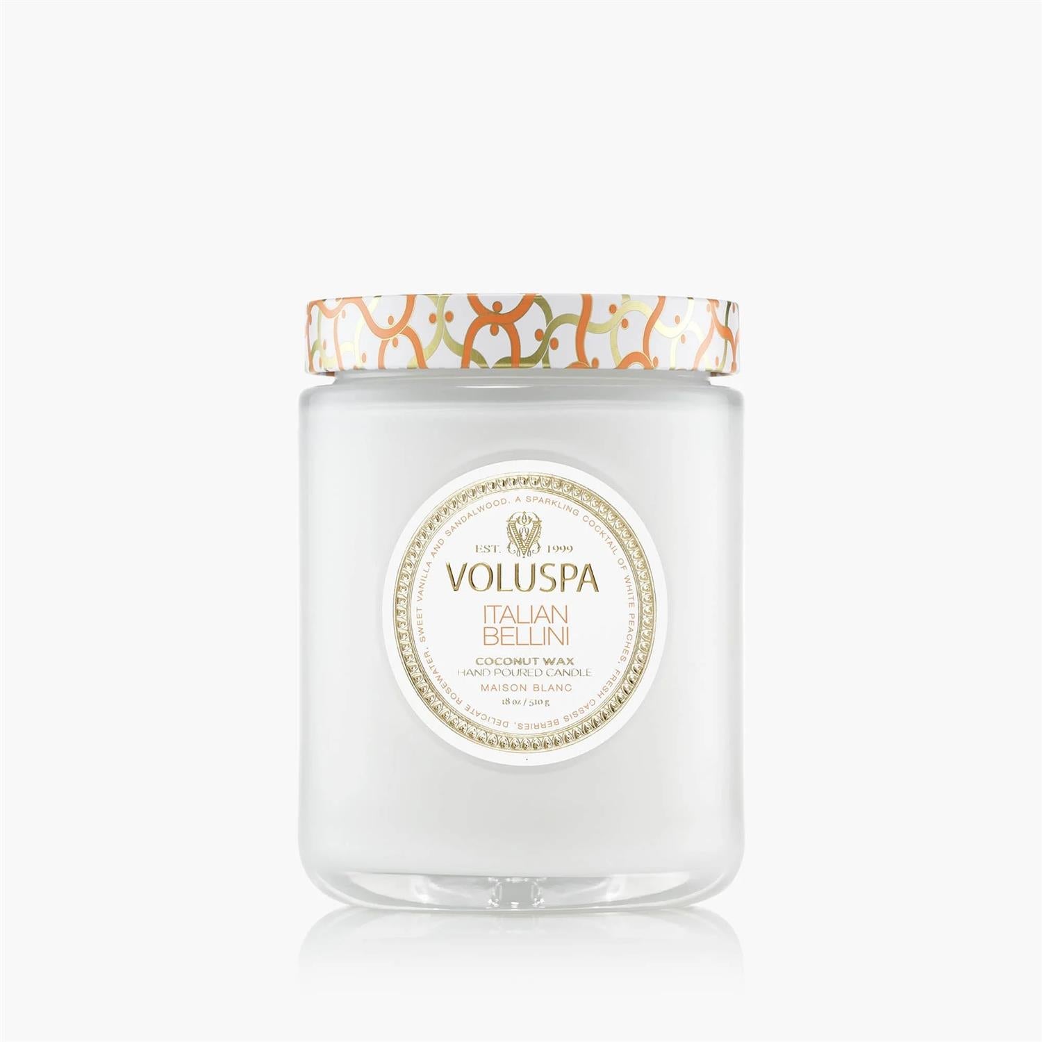 Dette elegante duftlyset er håndlaget i USA og kommer i et stilrent, hvitt glass med vakker, preget Maison-lattice-design. Lokket i metall fungerer både som støvbeskytter og dekorativ sokkel når lyset er tent. Med hele 100 timers brennetid er dette et lys du kan nyte lenge – perfekt som gave eller et statement hjemme.