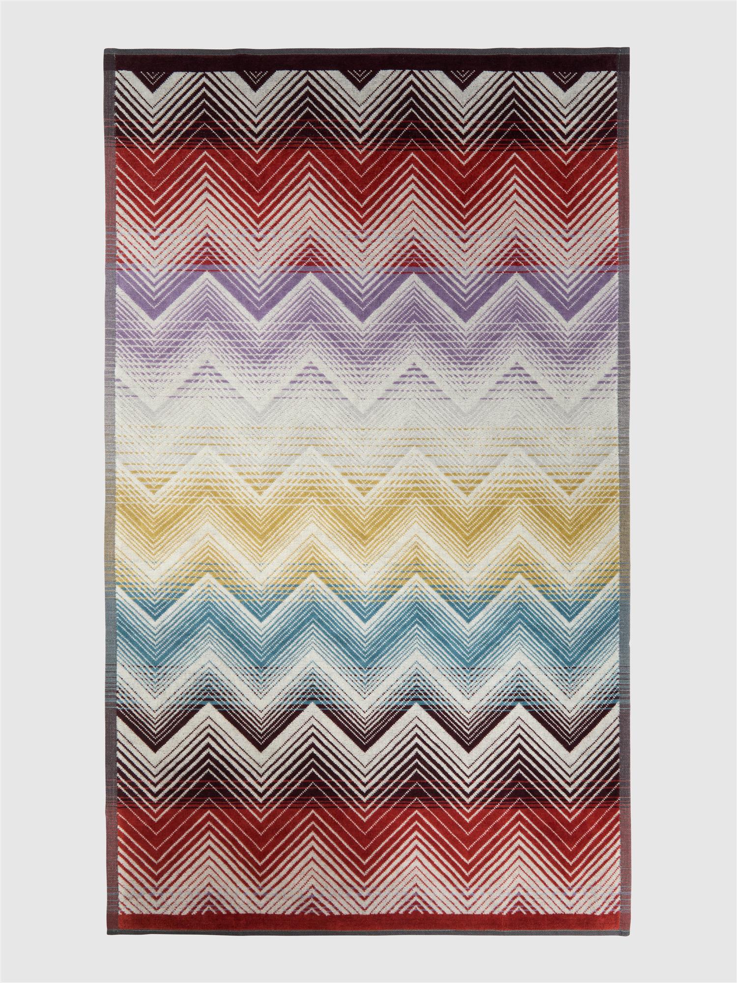 Marea-serien fra Missoni Home er et kunstverk i tekstilform – like mye et designobjekt som et funksjonelt håndkle. Med sitt ikoniske sikksakkmønster og fargeoverganger i dype bordeaux, lavendel, sennepsgult, isblått og kremhvit, bringer Marea varme og energi til både badet og strandvesken. Hver farge glir sømløst over i neste, og skaper en levende, grafisk effekt typisk for Missonis anerkjente stilunivers.