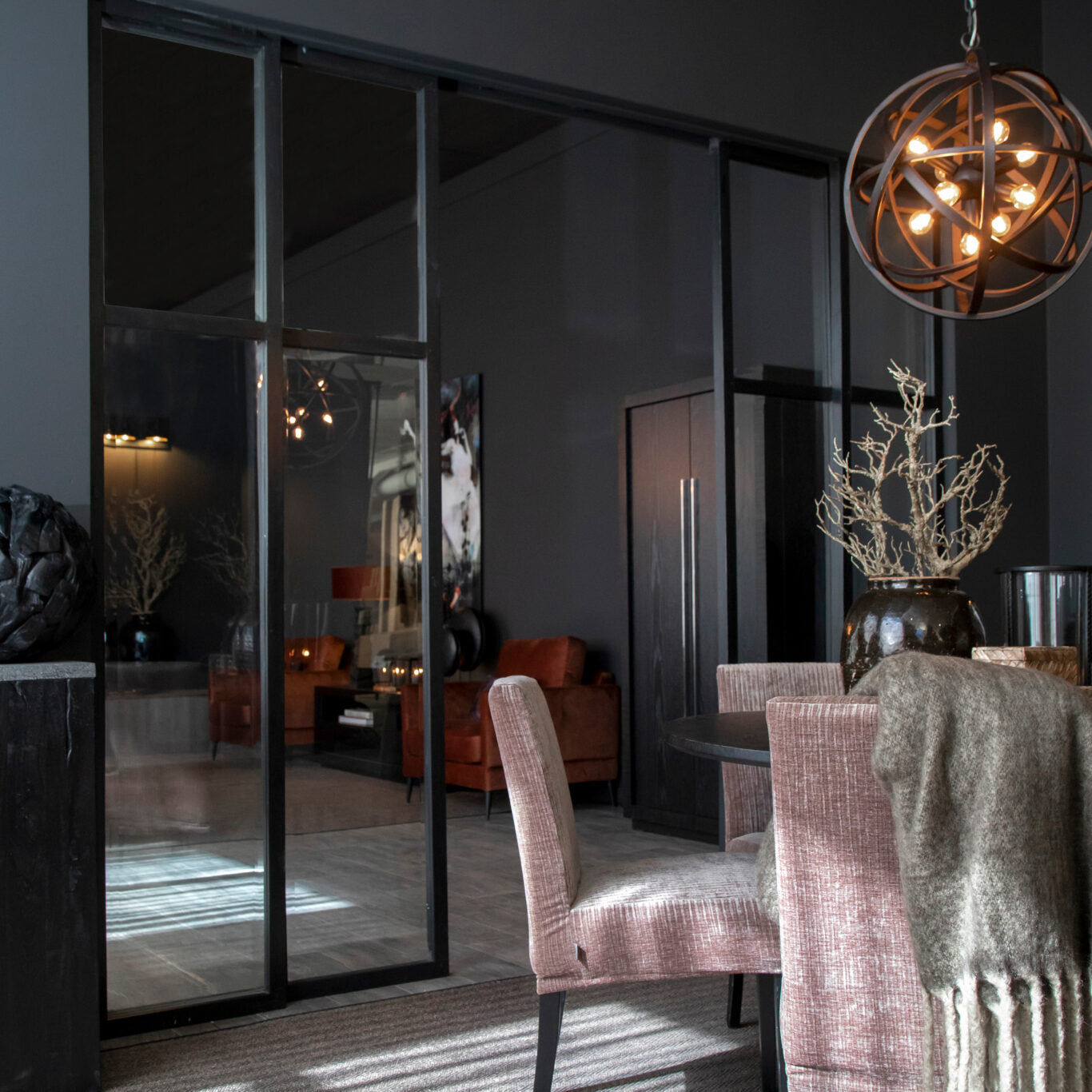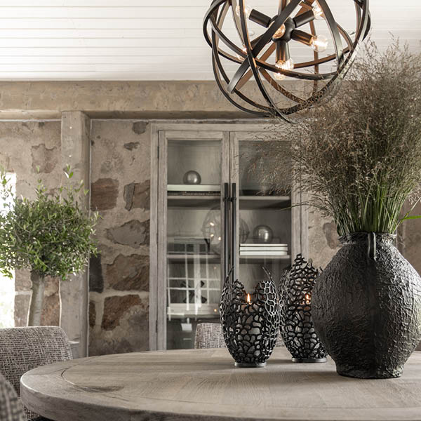 Taklampen har plass til hele ni lyskilder, noe som gir rikelig og stemningsfull belysning. Den leveres med en kjedelengde på 60 cm og en kabellengde på 120 cm, slik at den enkelt kan tilpasses ulike takhøyder og romløsninger. Lampen finnes i to størrelser og denne varianten har en diameter på 50 cm.
