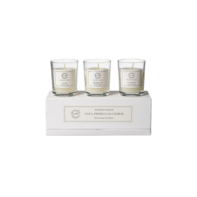 Bruka Design Duftlys – Cava, Prosecco & Chablis (3 pk)