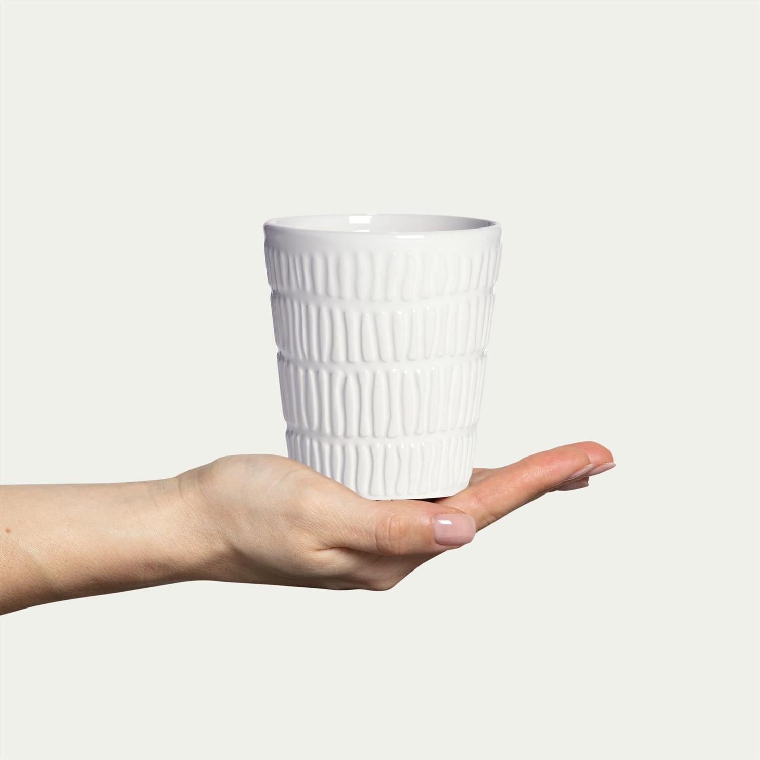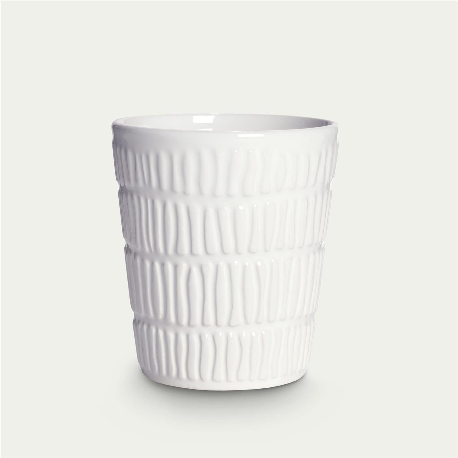 Stripes mug i hvit fra Mateus. Stripes serien er en behagelig serie med myke former balansert med et grafisk mønster og organiske striper og den karakteristiske glaserte overflate.