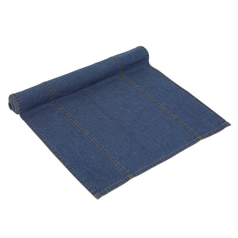 En løper i vasket denim som gir en myk, behagelig følelse og et autentisk jeanspreg. Doble dekorsømmer langs kantene skaper en stilig kontrast og understreker det moderne, stilrene uttrykket.