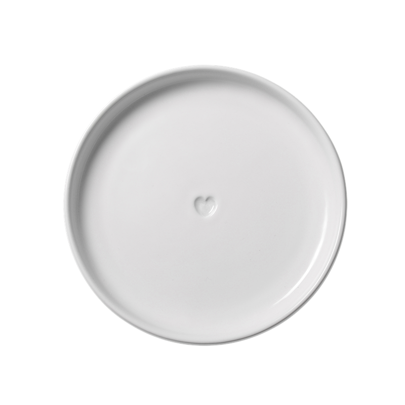 En sjarmerende assiett fra Bruka Design med et delikat, preget hjerte i midten. Den glansfulle, hvite glasuren og det enkle designet gir et tidløst og romantisk uttrykk som passer til enhver anledning – fra frokostbordet til kaffestunden.
