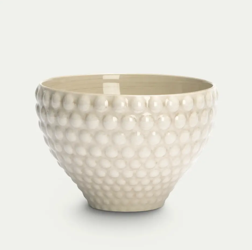 Bubbles skål har et sjarmerende, organisk design med en glasert overflate og keramiske bobler. Bubbles kolleksjonen er moderne og leken og har hentet inspirasjon av motens tradisjonelle prikkete mønster. Tallerkenen er preget av den glaserte overflaten og et bånd av det ikoniske prikkemønstert.