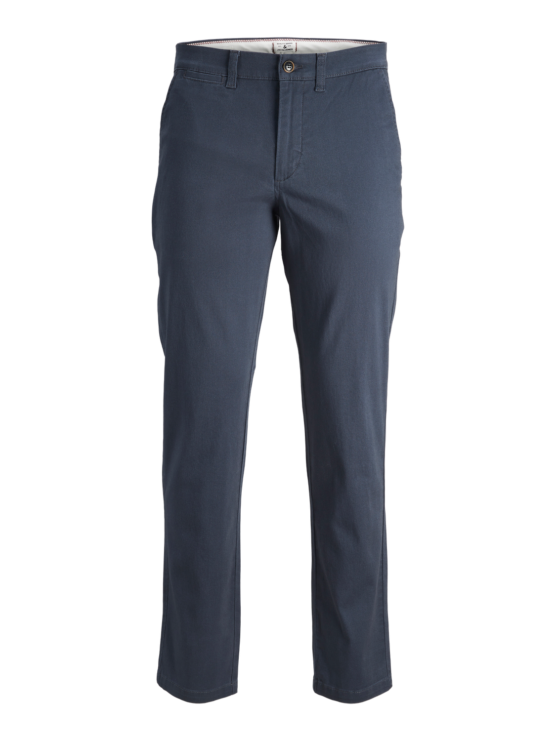 Oppgrader garderoben med et par chinos. Denne tidløse favoritten er det semi-formelle alternativet til jeans. Vevd stoff er et solid og slitesterkt materiale som ikke strekker seg som strikkede stoffer. Oppdag den kule verdenen til JACK & JONES Junior, hvor mote blir virkelighet med et utbrudd av ungdommelig energi og livlig sjarm. Våre kolleksjoner er en blanding av freshe, trendy og kule design skreddersydd for gutter i alderen 3–16 år. Fordyp deg i komfortable styles av høy kvalitet som fremhever guttemote. Fra kule passformer til moderne stil, JACK & JONES Junior redefinerer mote for alderen 3–16 og omfavner voksenånden i hvert antrekk.. - Produkttype : Chinobukse - Lukking : Glidelåsgylf - Lommer : Forlommer, Baklommer - Høyde til midje : Middels høyt snitt - Kroppstype : Junior - Passform : Klassisk, normal passform fra låret og ned til benåpningen. Perfekt for gutter som ønsker ekstra rom og et normalt snitt. Våre jeans med normal passform kommer alltid med stretch for å sikre full fleksibilitet