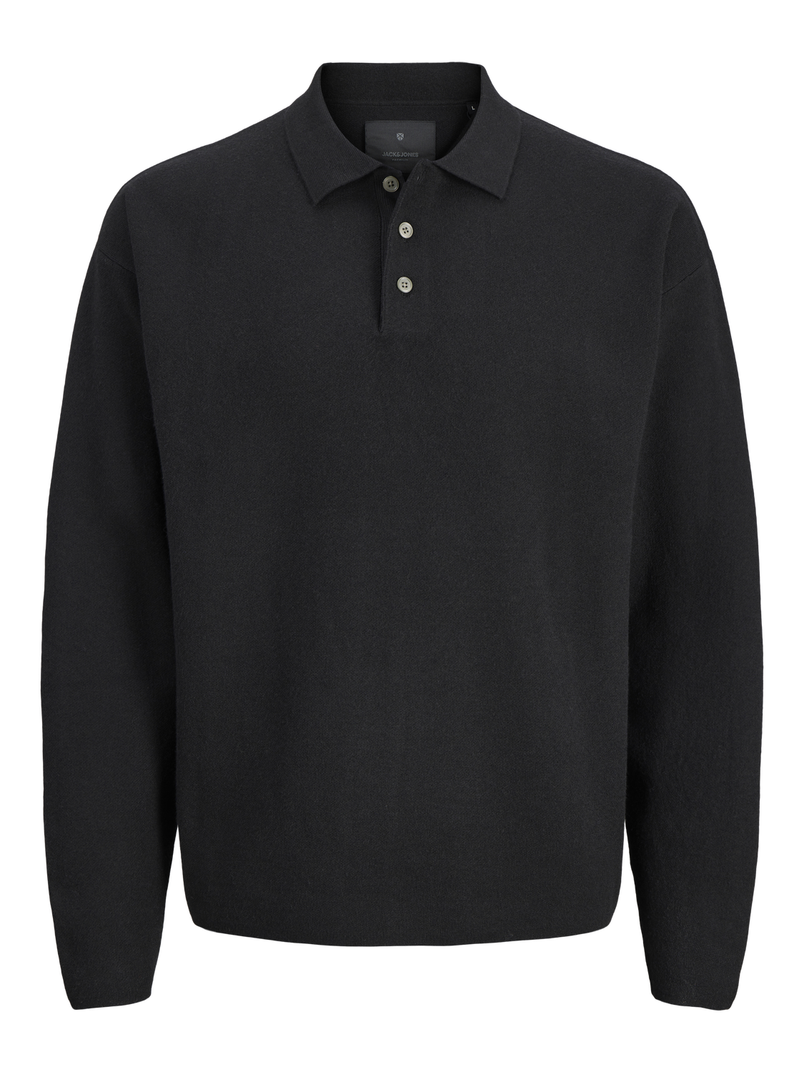 JPRBLABRADFORT KNIT POLO LN JNR er en stilren og komfortabel strikket polo i sort, perfekt for hverdagsbruk. Denne poloen kombinerer moderne design med funksjonalitet, og gir et tidløst preg til enhver garderobe.