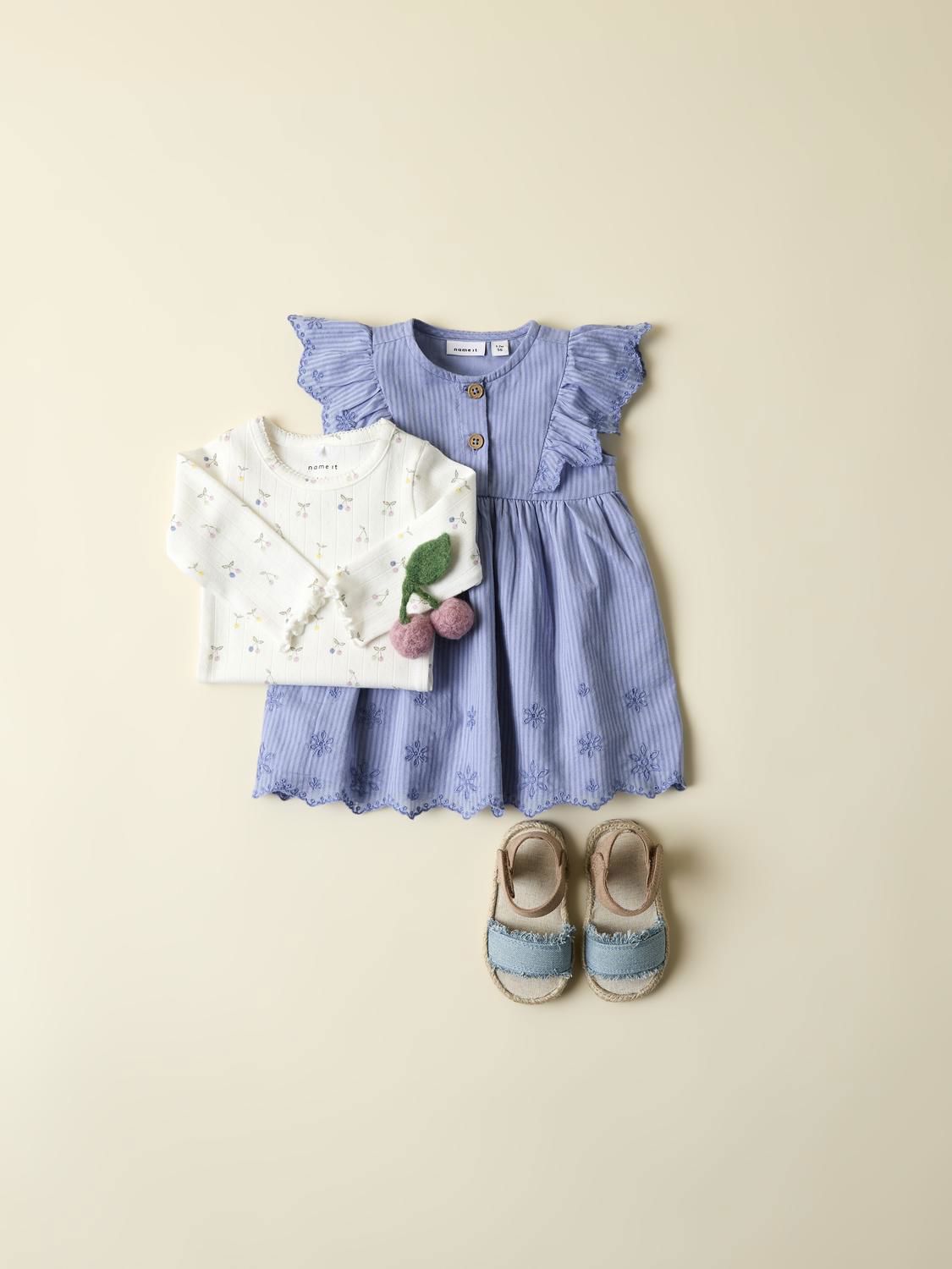 Oppdater barnets garderobe med den stilige NBFFILLIAN SPENCER kjolen i lyselilla. Denne kjolen er laget av lett seersucker-stoff, som gir en unik rynket effekt og er perfekt for varme dager.