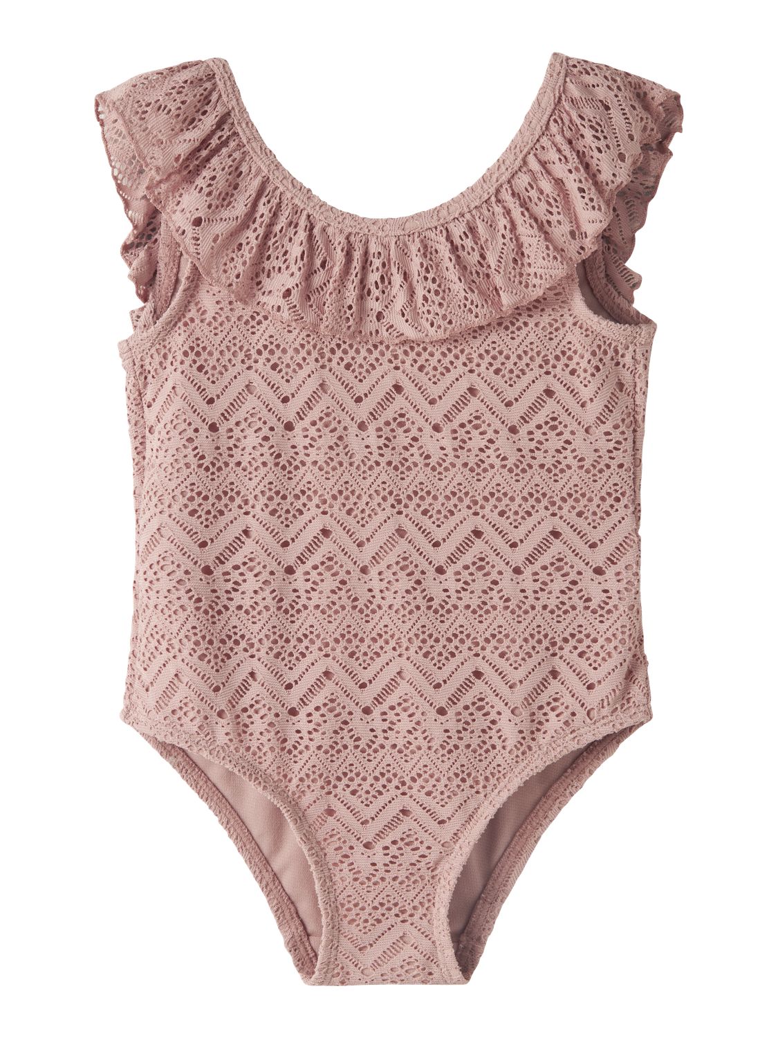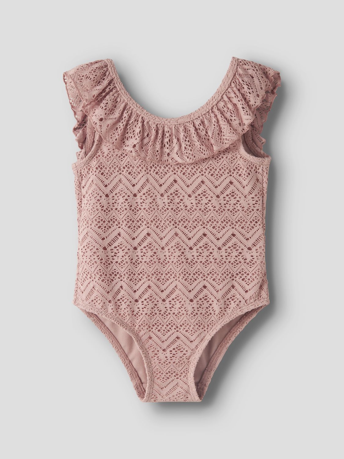 NMFFELINE badedrakt i Misty Rose er perfekt for varme dager ved vannet. Den trendy designen med rysjer gir barnet ditt en søt og stilfull look, ideell for svømmeturer eller strandbesøk.