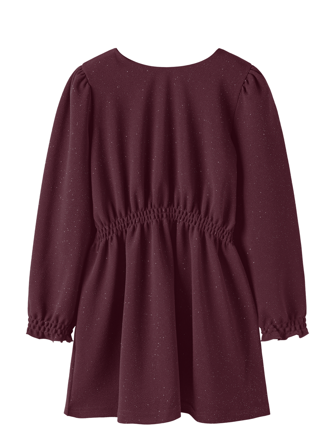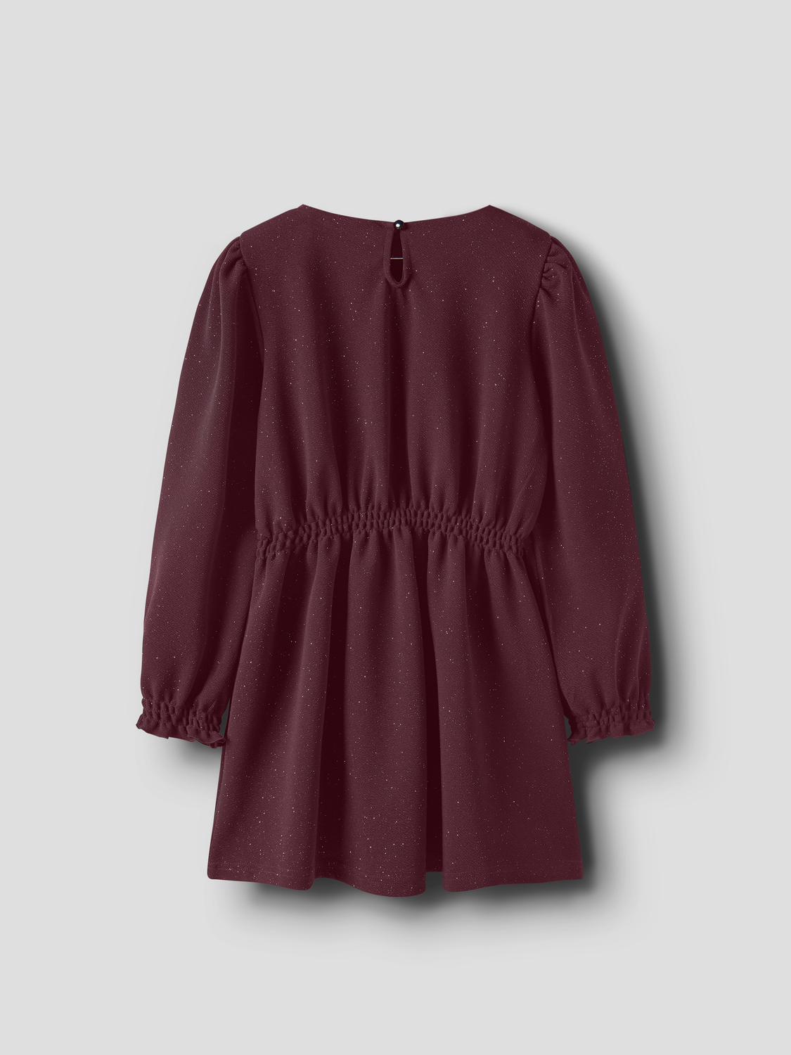 Name It - Nkfroka Ls Waist Dress - Burgundy O-Neck
