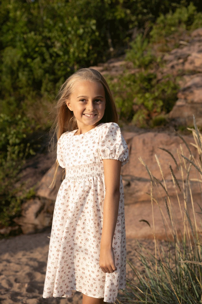 Tidløs og feminin kjole fra Vilje & Ve, designet med høyt liv og et delikat blomstermønster. Foret med myk viskose for ekstra komfort, og med skjult glidelås bak for en elegant, sømløs look. Perfekt til både festlige og mer formelle anledninger.