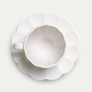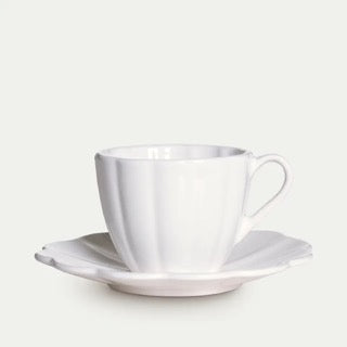 Kopp med fat i hvit fra den populære serien, Mateus Oyster. Denne serien er en slager i mangt et hjem. Designet er inspirert fra sjøen og har samme karakteristiske glaserte finish som resten av kolleksjonene til Mateus. Dekk bordet ut fra din personlighet og mix og match iblant kolleksjonene.