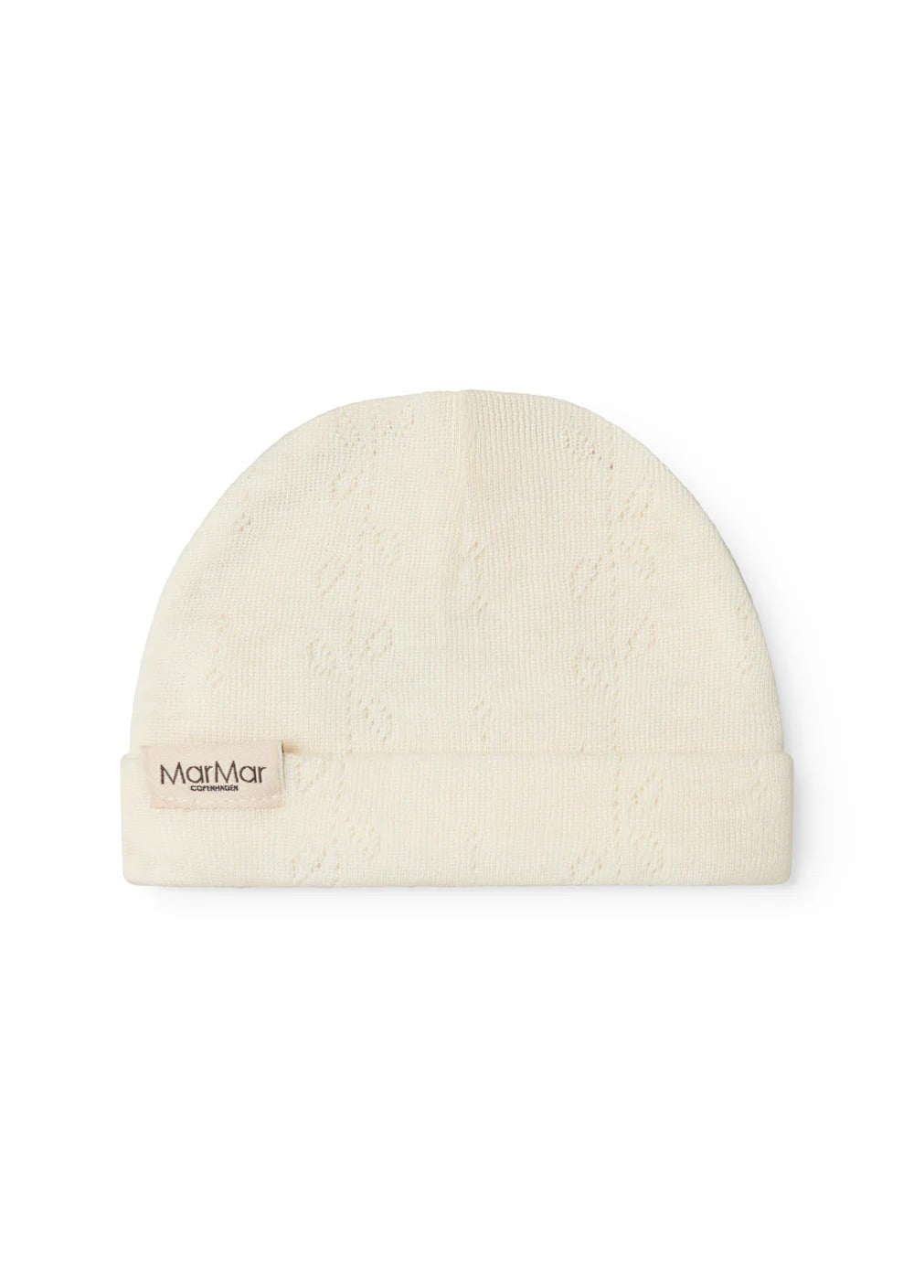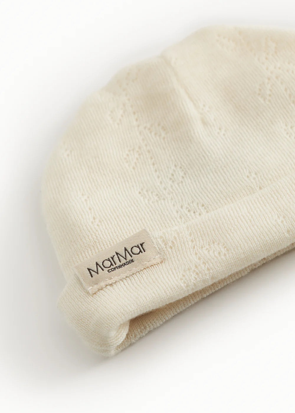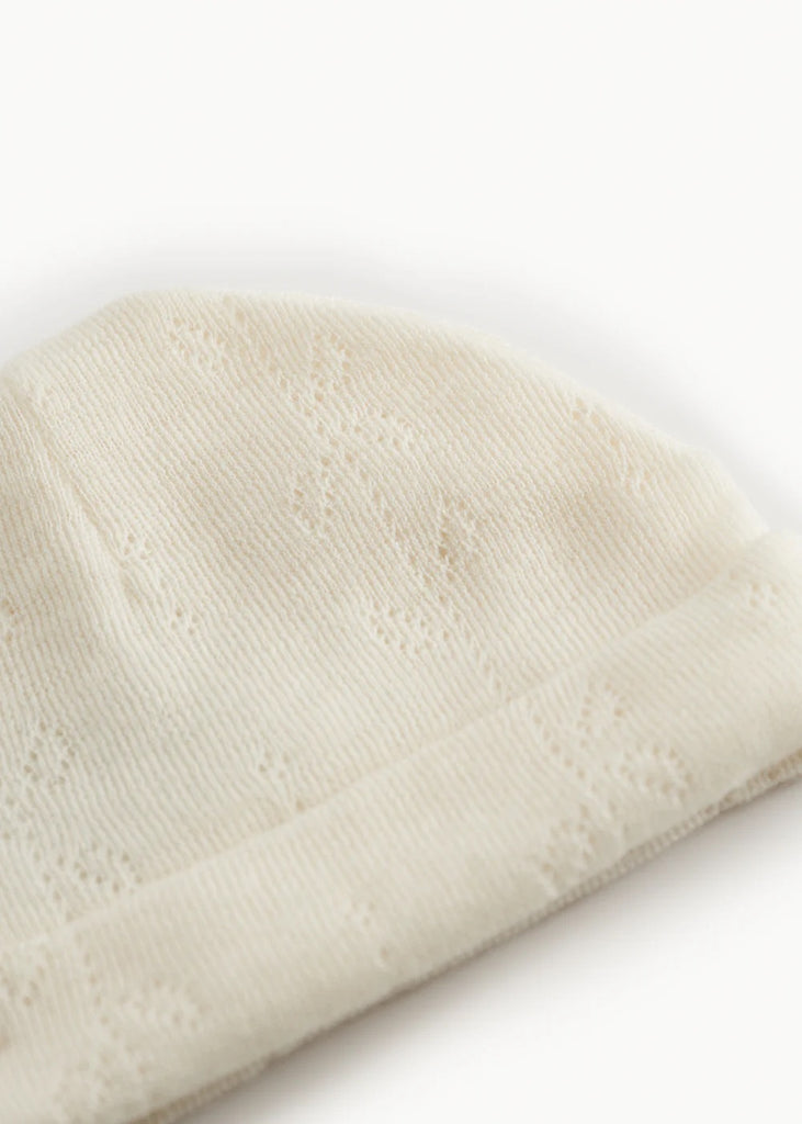Liten lue til de minste med brem som kan brettes opp eller ned. Luen har fine pointelle-detaljer.