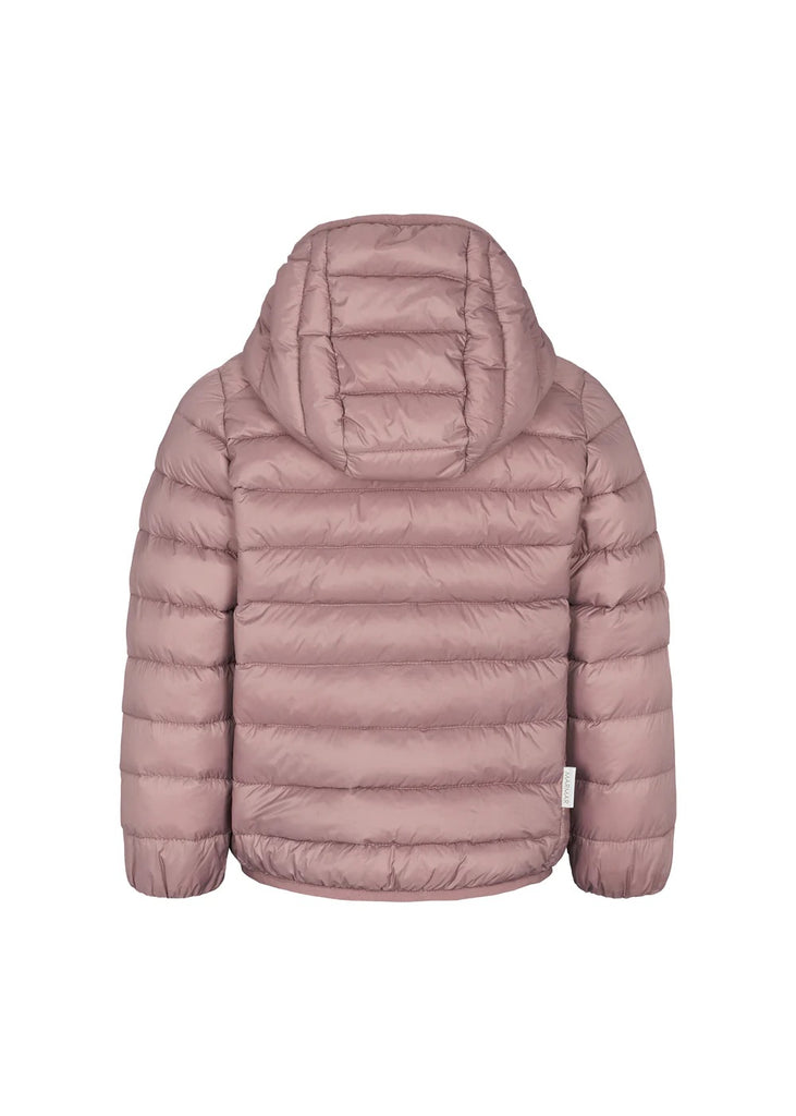 Lett og behagelig dunjakke – perfekt for kjølige dager. Jakken har elastiske kanter på ermer og kropp, praktiske lommer med skjulte glidelåser på begge sider og en høy krage som beskytter mot vind. Den har avtakbar hette og passer like godt til hverdags som til utendørs aktiviteter.