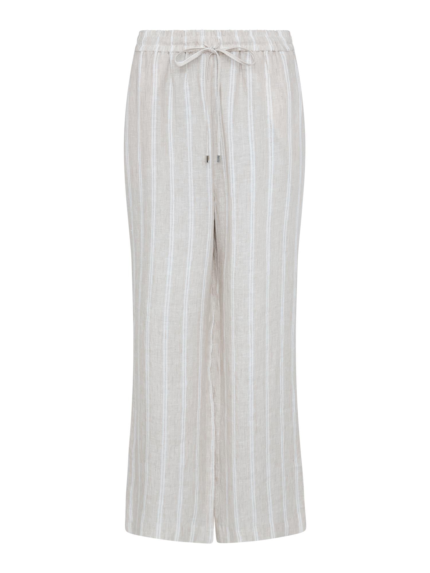 Denne stilrene buksen fra Ane Mone er laget i 100 % lin og har et lett og luftig uttrykk, perfekt for varme dager. Det diskrete stripemønsteret i lyse naturtoner gir et tidløst og avslappet preg, samtidig som linmaterialet sørger for høy komfort og god pusteevne.