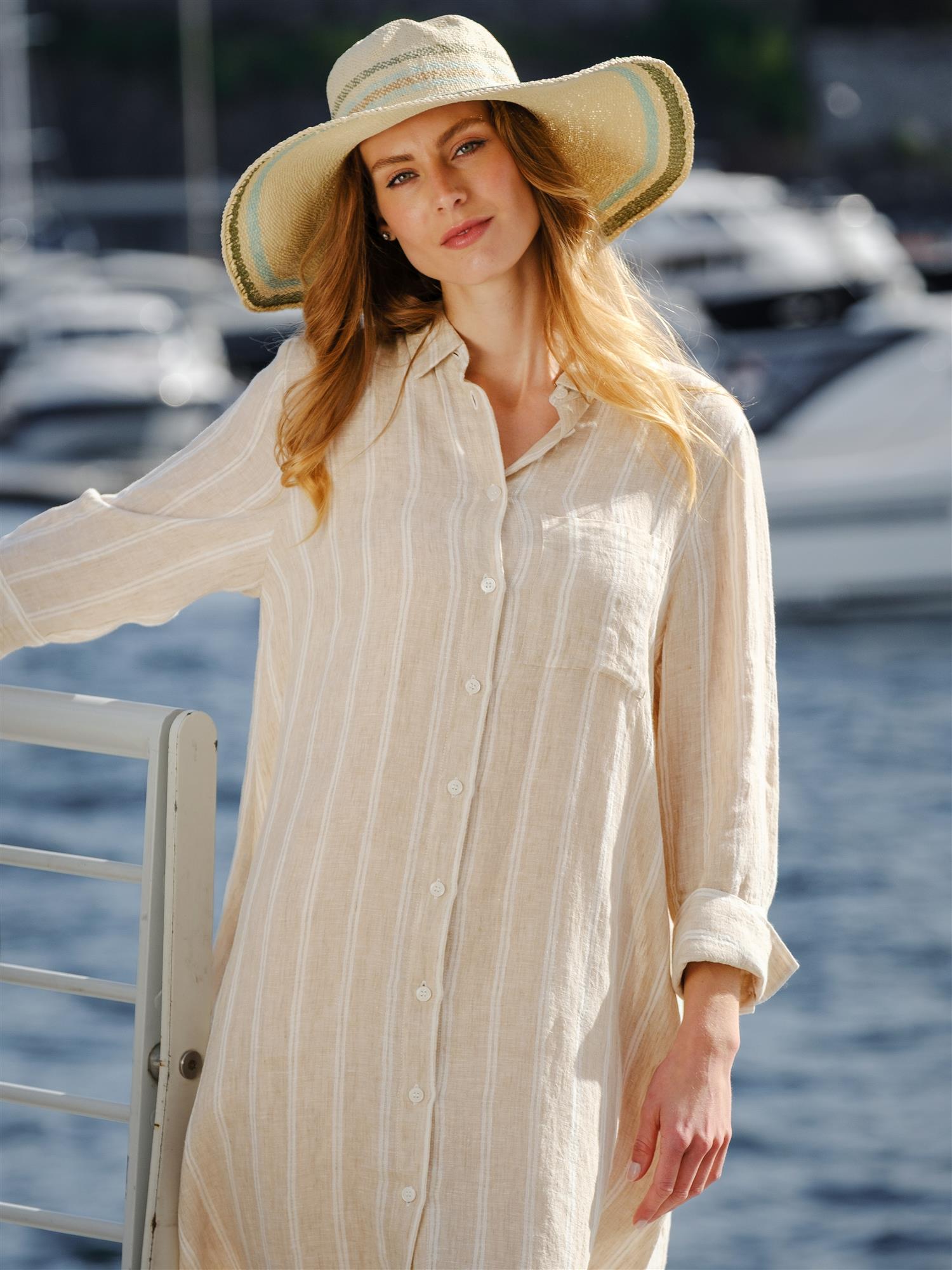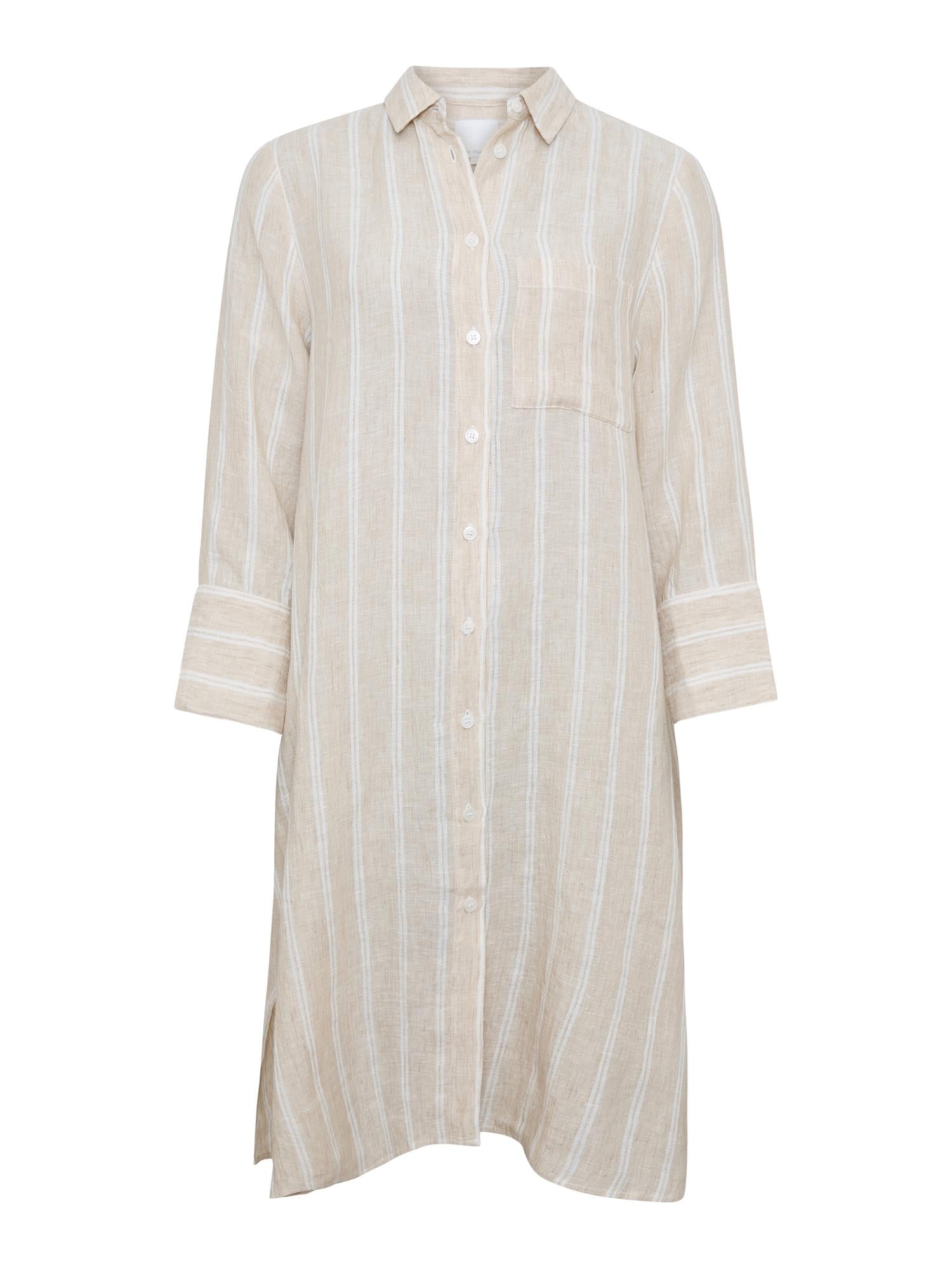 Denne tidløse linkjolen fra Ane Mone har et avslappet, men elegant uttrykk. Det diskrete stripemønsteret i lyse naturtoner gir et rent og sommerlig preg, mens linmaterialet sørger for god pusteevne og høy komfort på varme dager.
