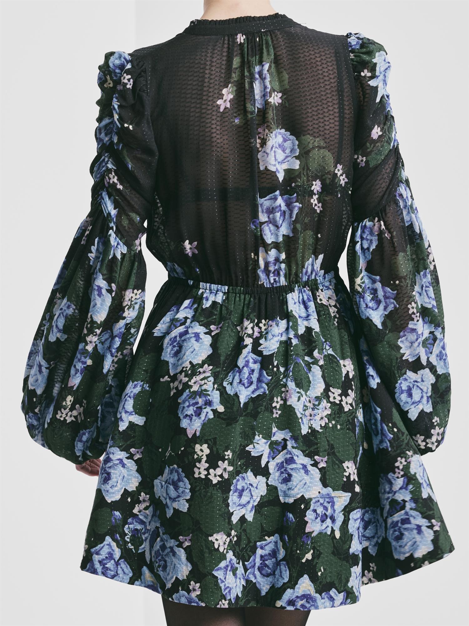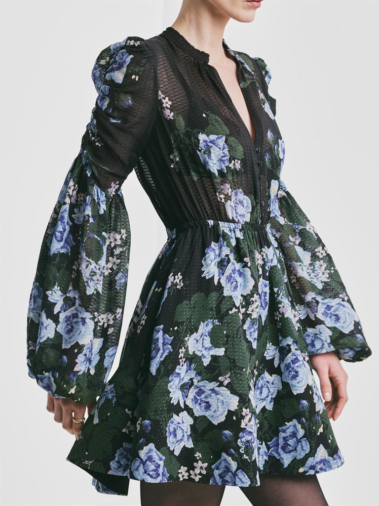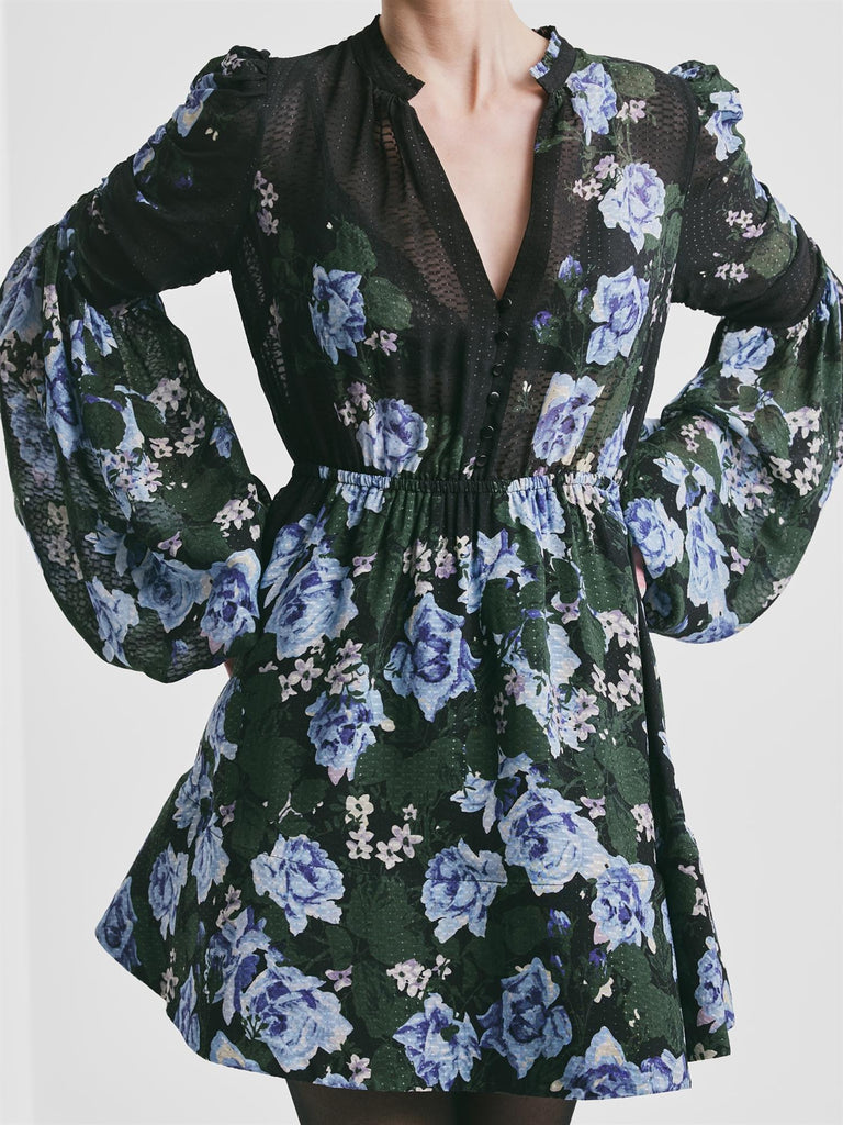 Designet med en flatterende V-utringning, subtile voluminøse ermer og en feminin silhuett, kombinerer den tidløs eleganse med et moderne uttrykk.