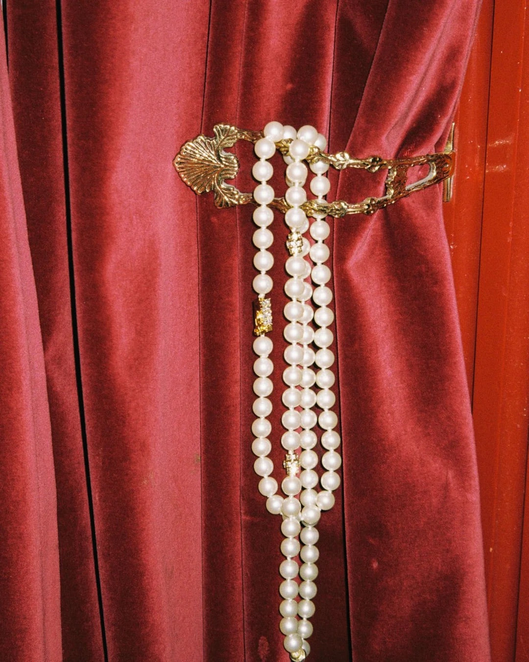 The Pearl Necklace fra byTiMo er et elegant smykke laget av glansfulle bijouteriperler med dekorative gullfargede detaljer og Cubic Zirconia-stener mellom perlene og på låsen. Det allsidige designet kan bæres som et langt statement-smykke, vikles flere ganger rundt halsen for et moderne uttrykk – eller brukes som armbånd. Et tidløst og sofistikert tilskudd til festgarderoben.