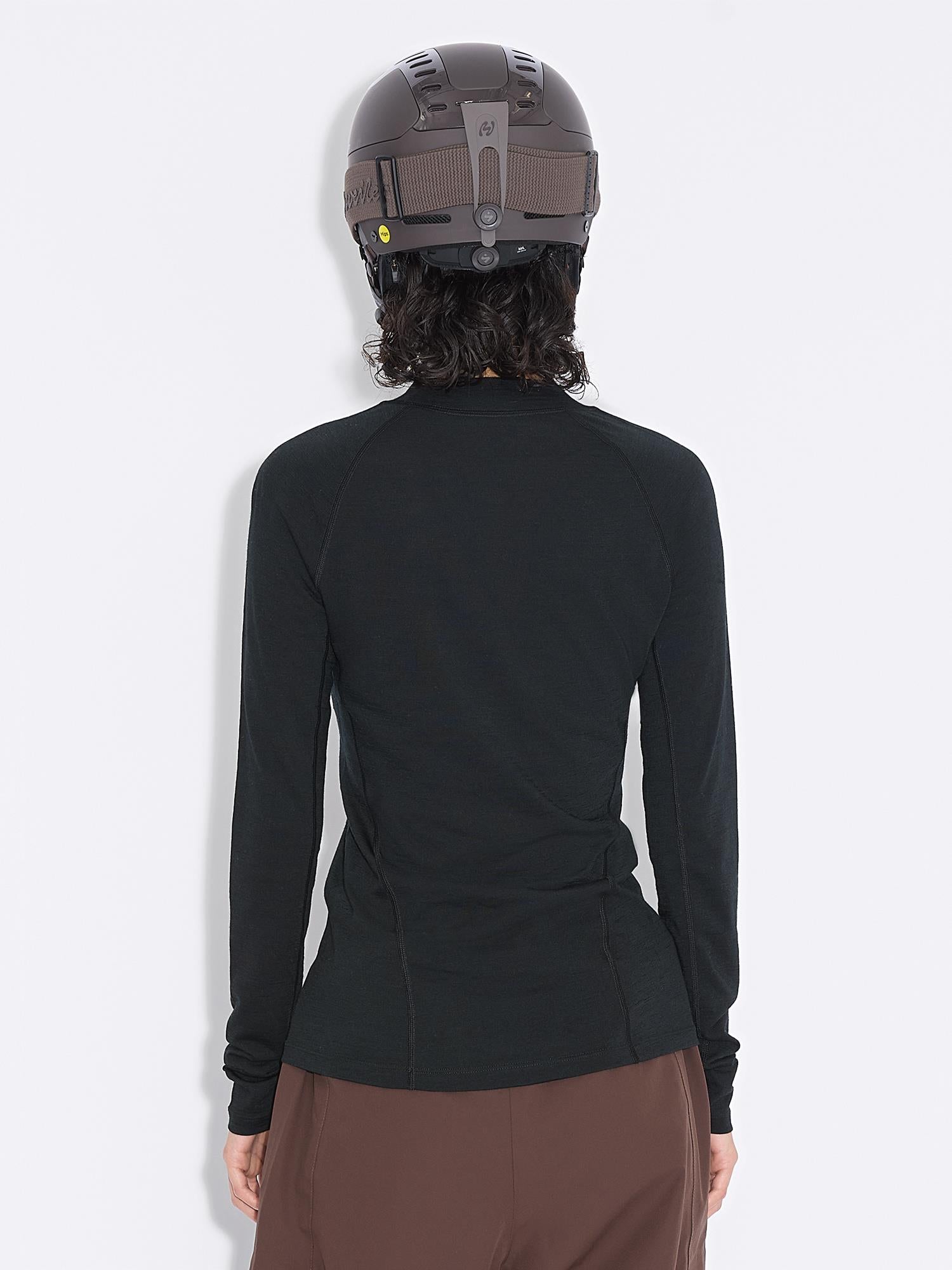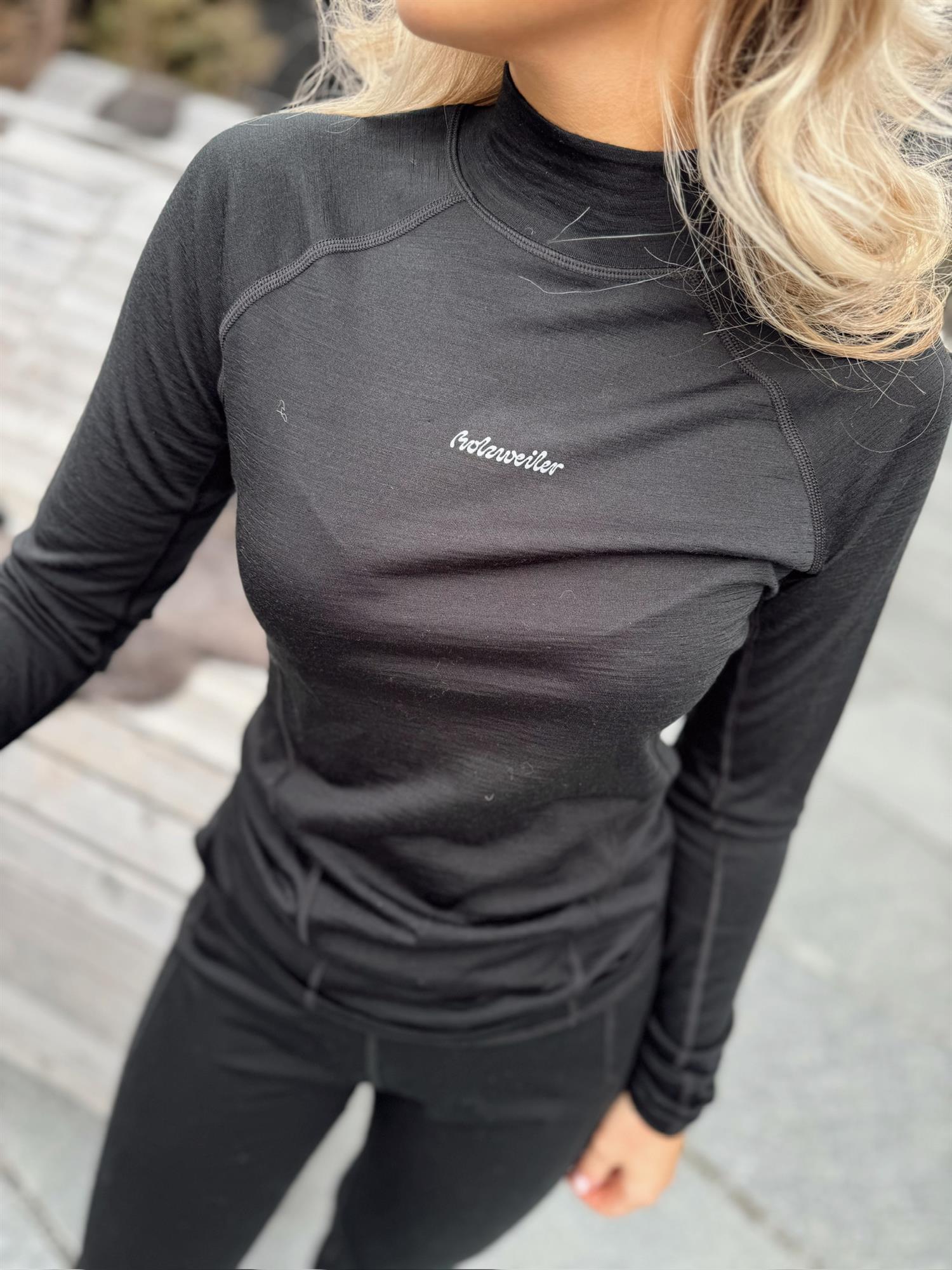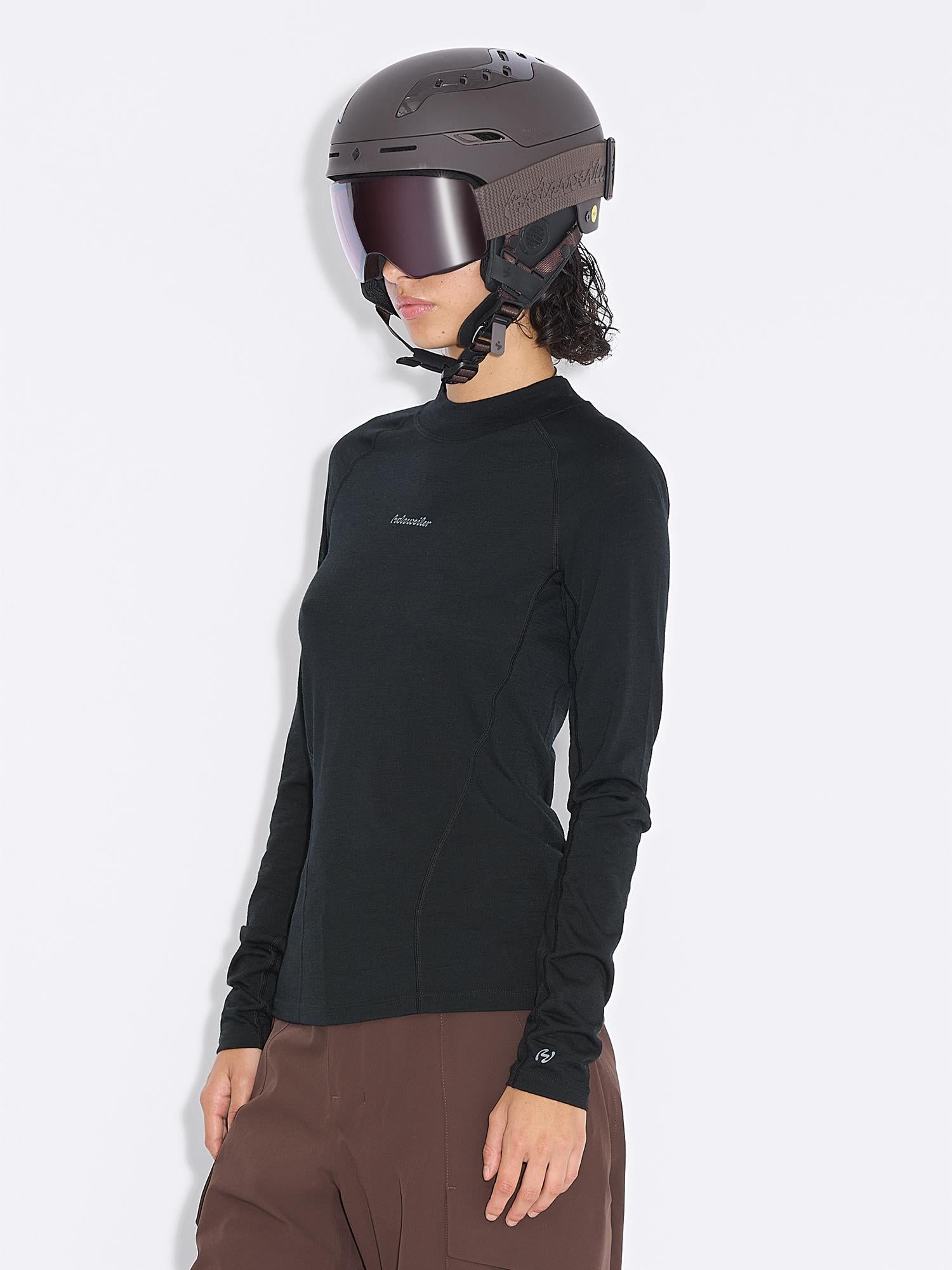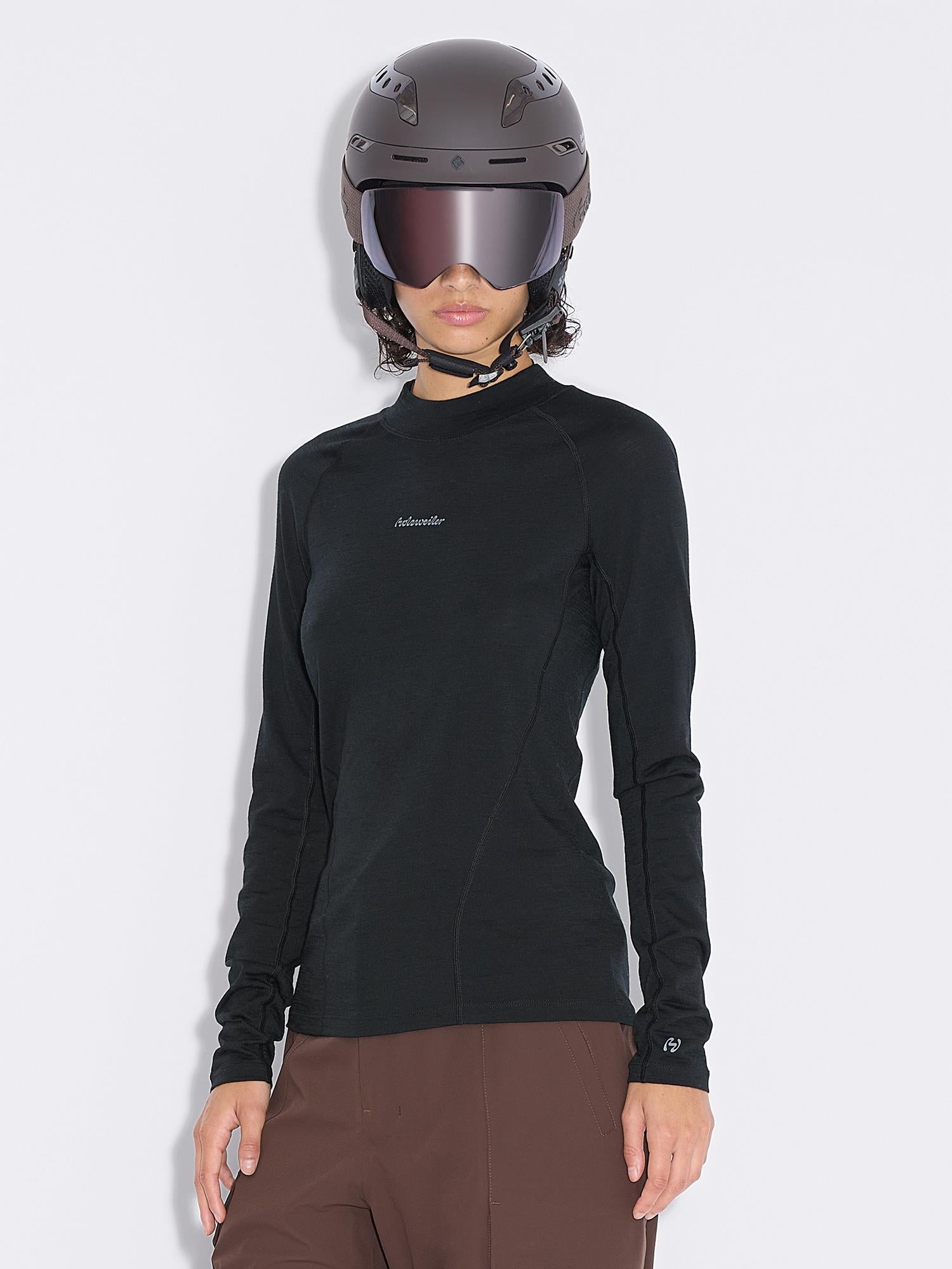 W Tryvann Top 25-04_SKI er en stilren og funksjonell topp som er perfekt for skiturer. Laget av en ullblanding, gir den både varme og komfort, samtidig som den har en moderne silhuett med høy hals og logo-detaljer. Denne toppen er ideell for å bli brukt under yttertøy.