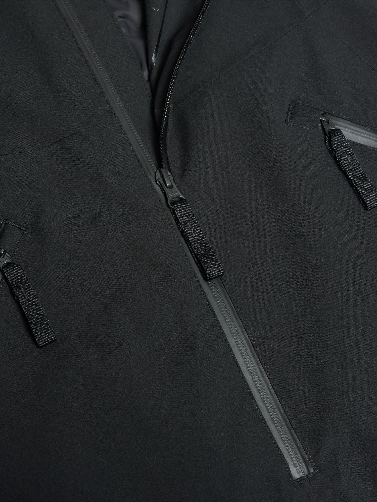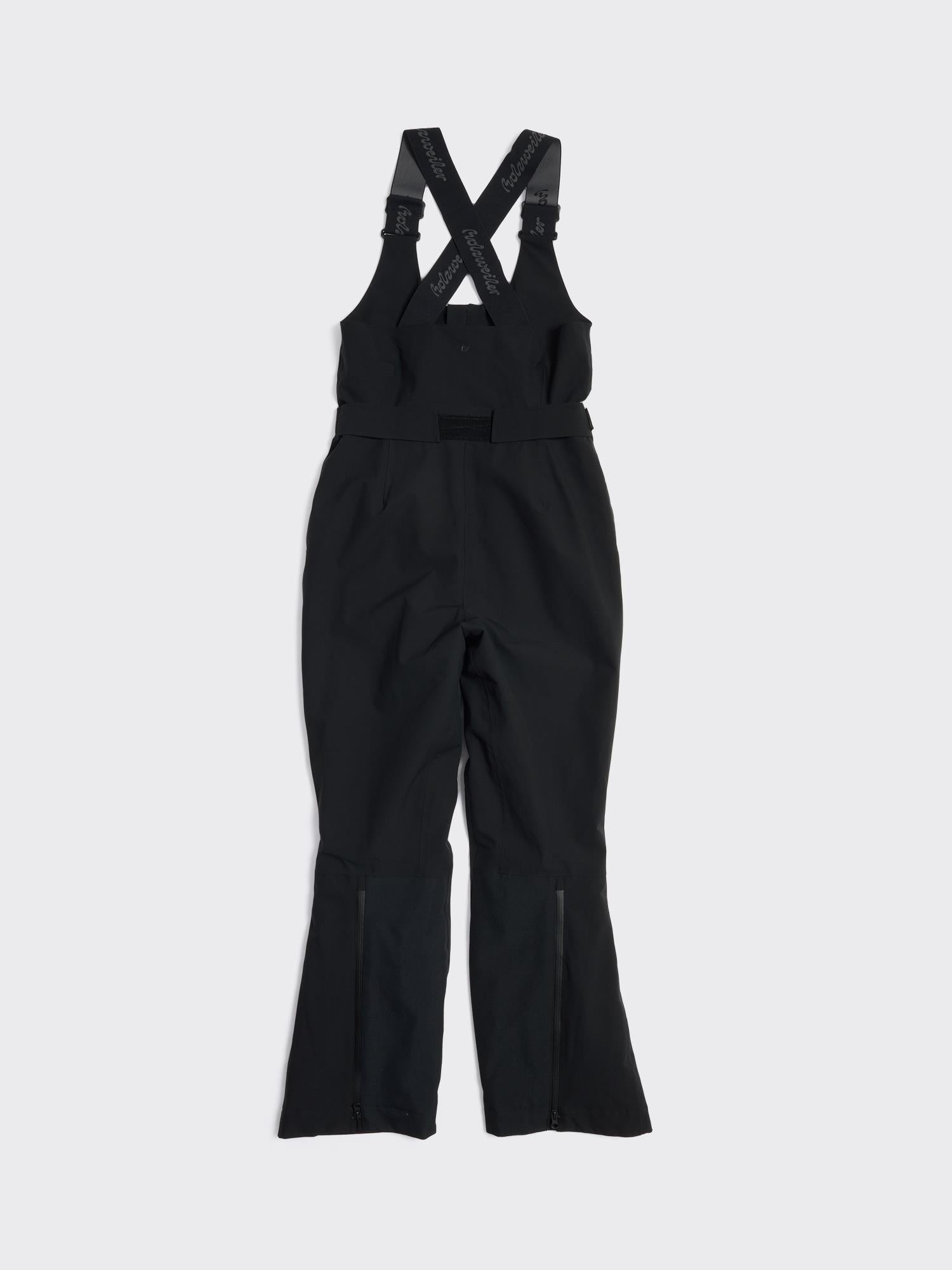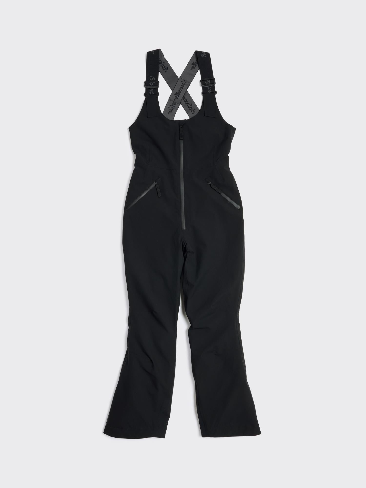 W Tryvann Bib-bukser kombinerer stil og funksjonalitet, perfekt for skikjøring. Med justerbare skulderstropper og laget av et polstret teknisk stoff, gir disse buksene både komfort og beskyttelse på bakken. De har glidelåslommer, en intern snøbeskytter, kroker i hemmet for å feste til støvlene, og vannavvisende glidelåser.