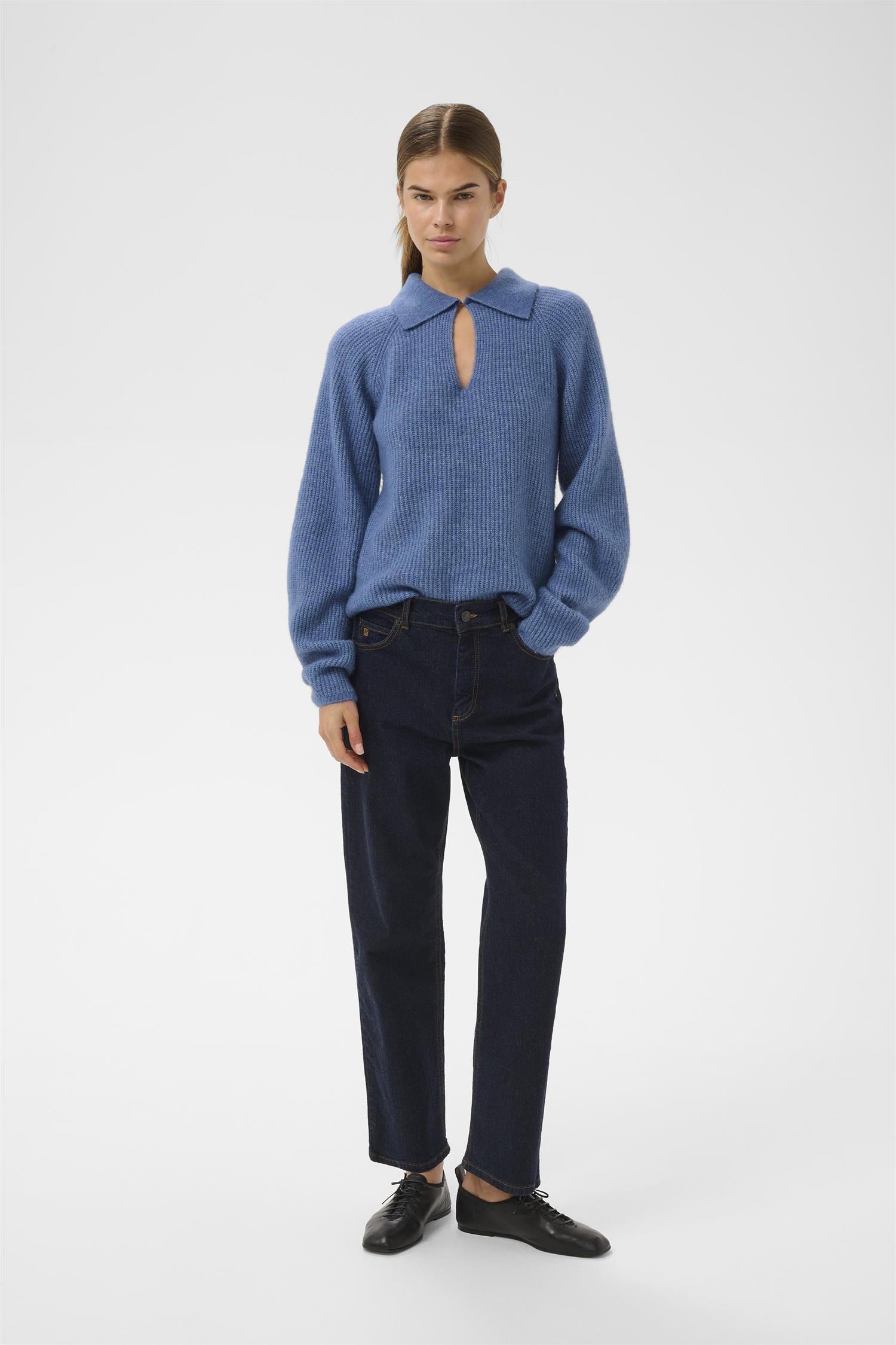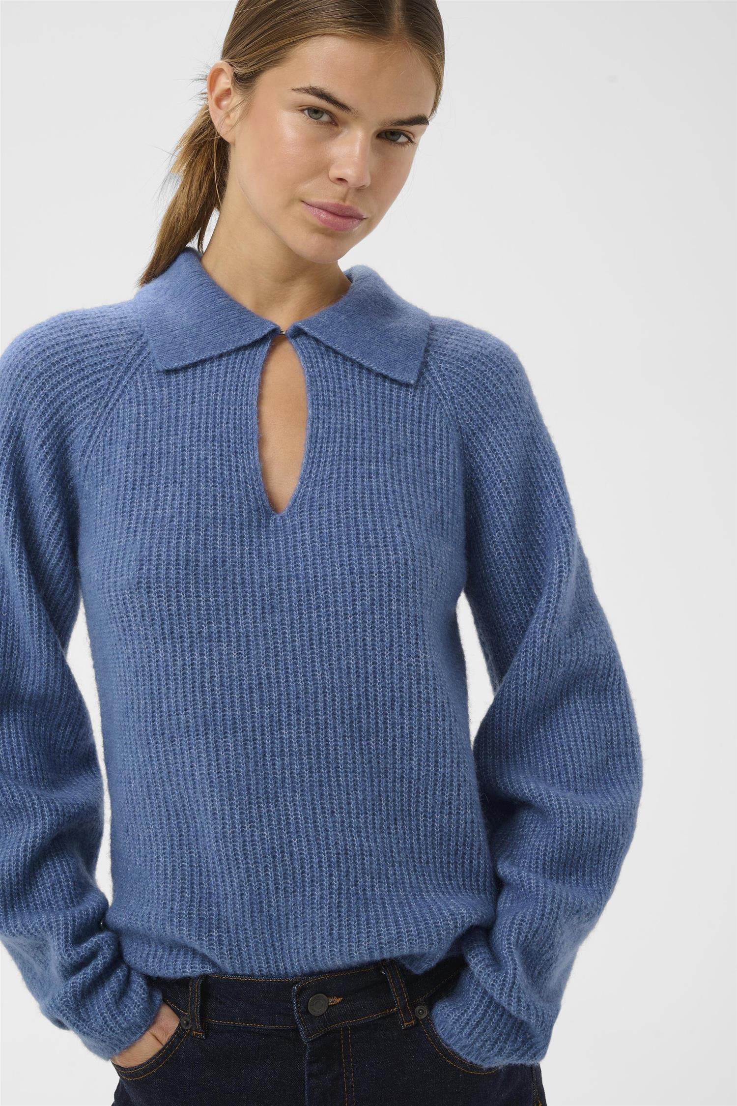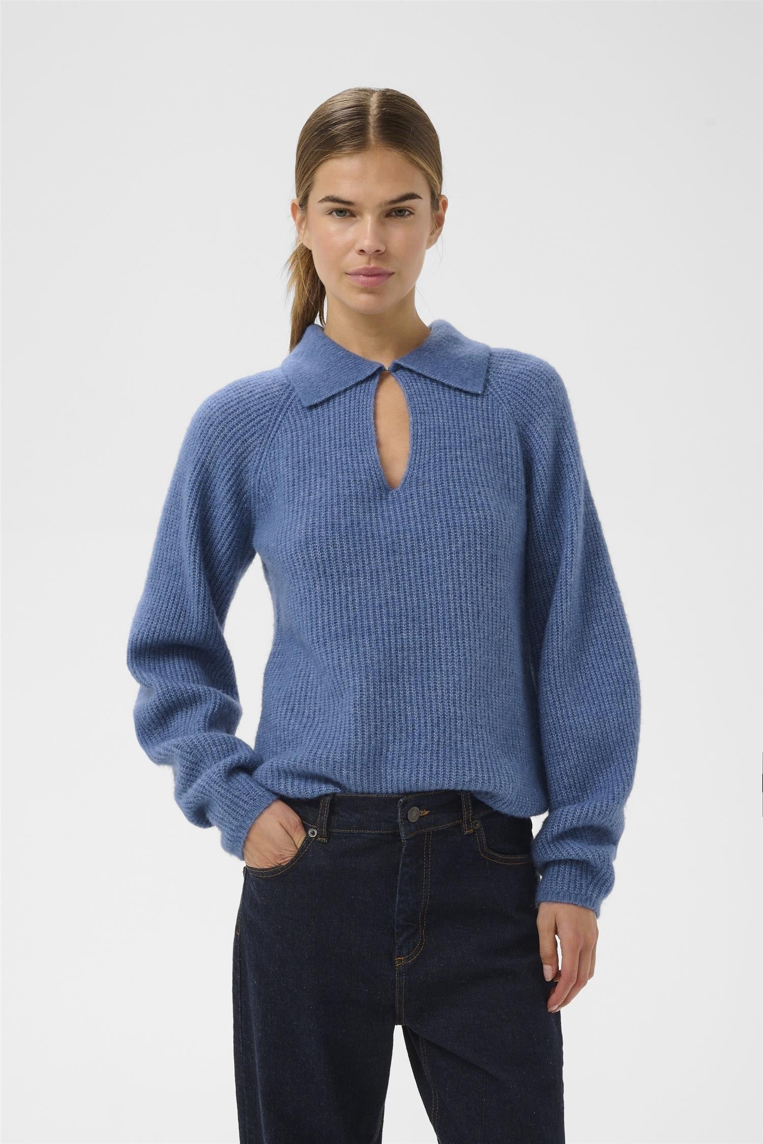 NIASIW POLO i en vakker Dutch Blue farge er en klassisk strikket genser som kombinerer stil og komfort. Med en perfekt passform og en luksuriøs blanding av materialer, er denne genseren ideell for hverdagsbruk.