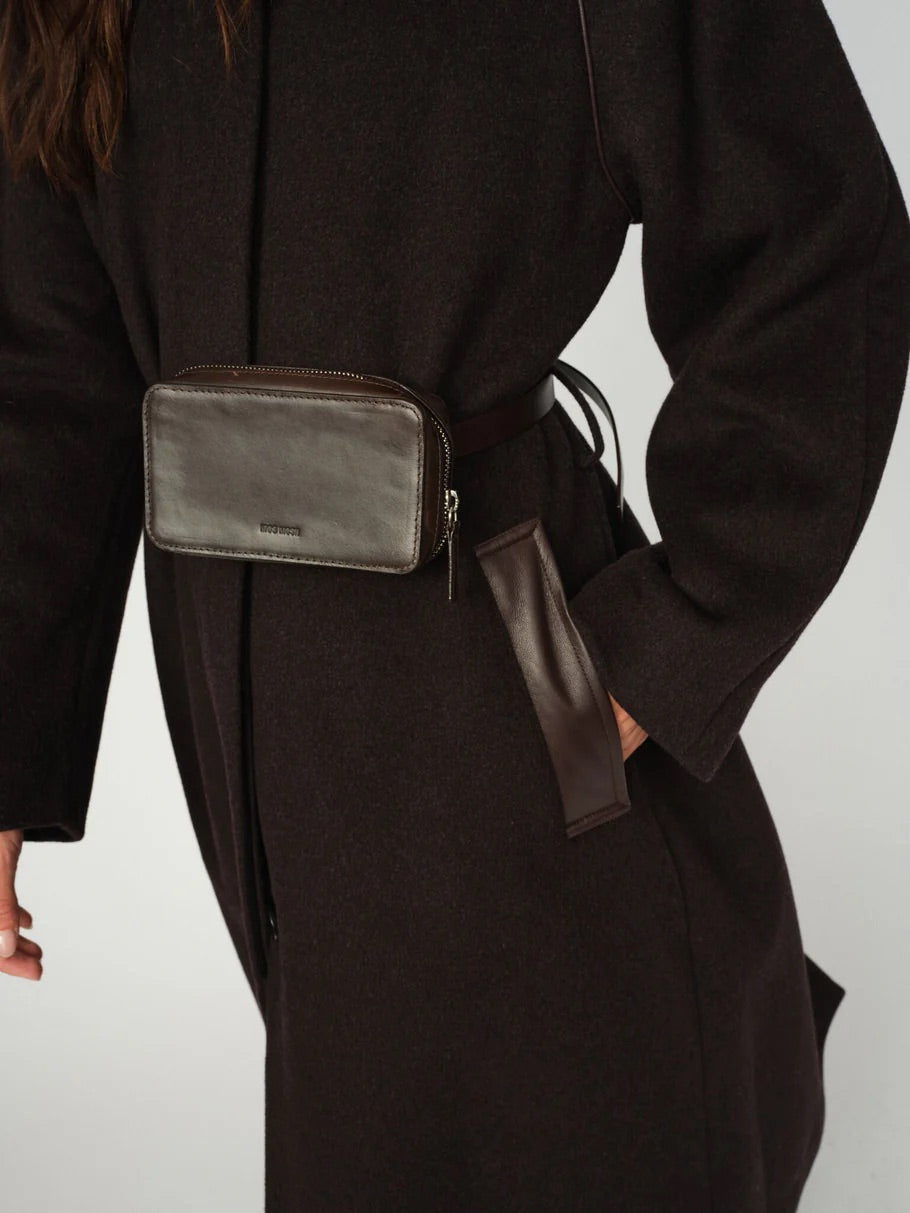 MMElin Belt Bag er en stilren og praktisk tilbehør som gir et elegant preg til ethvert antrekk. Denne beltetasken i fargen Chocolate Torte er perfekt for å oppbevare nødvendigheter på en chic måte.