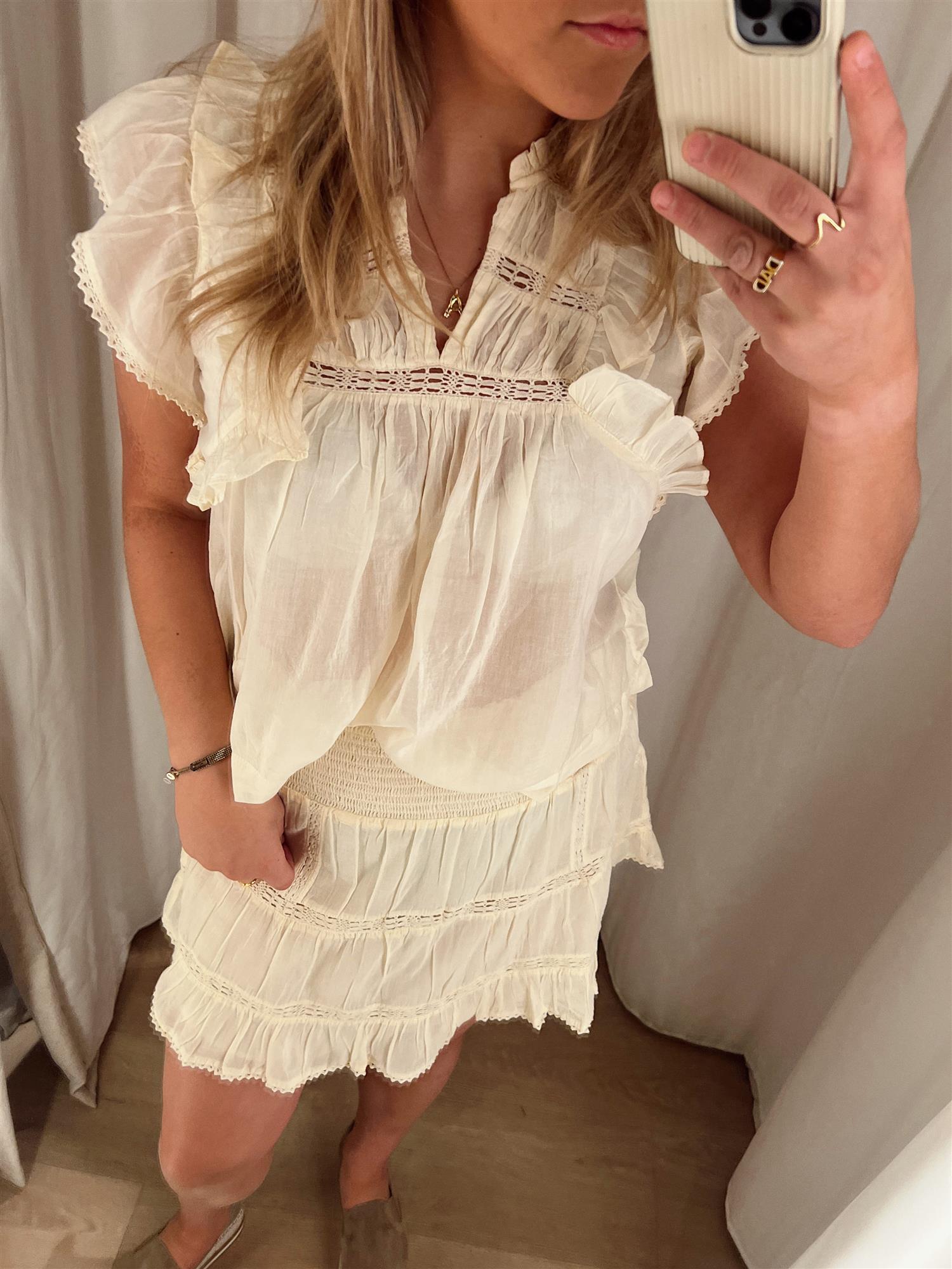 Robby S Voile Skirt er et luftig og feminint skjørt i lett bomullsvoile – perfekt for varme dager. Skjørtet har en flatterende midje og et ledig fall som gir bevegelse og en avslappet, men sofistikert silhuett. Bruk det med en enkel topp for en hverdagslig look, eller style det opp med bluse og sandaler for en mer gjennomført sommerstil.