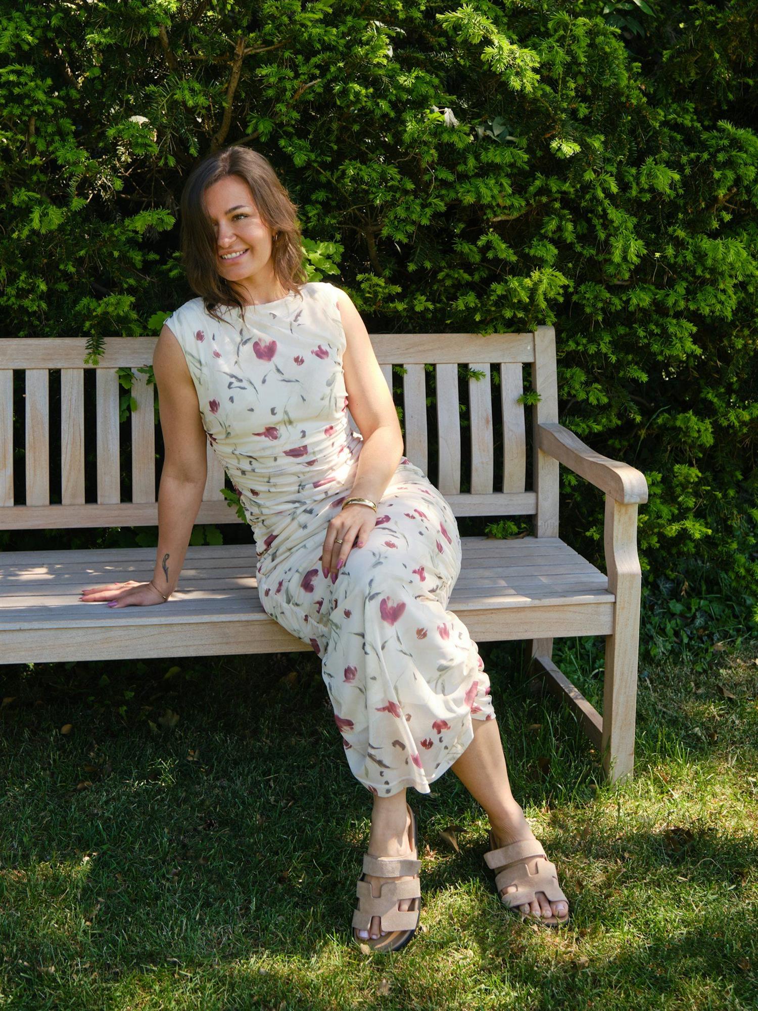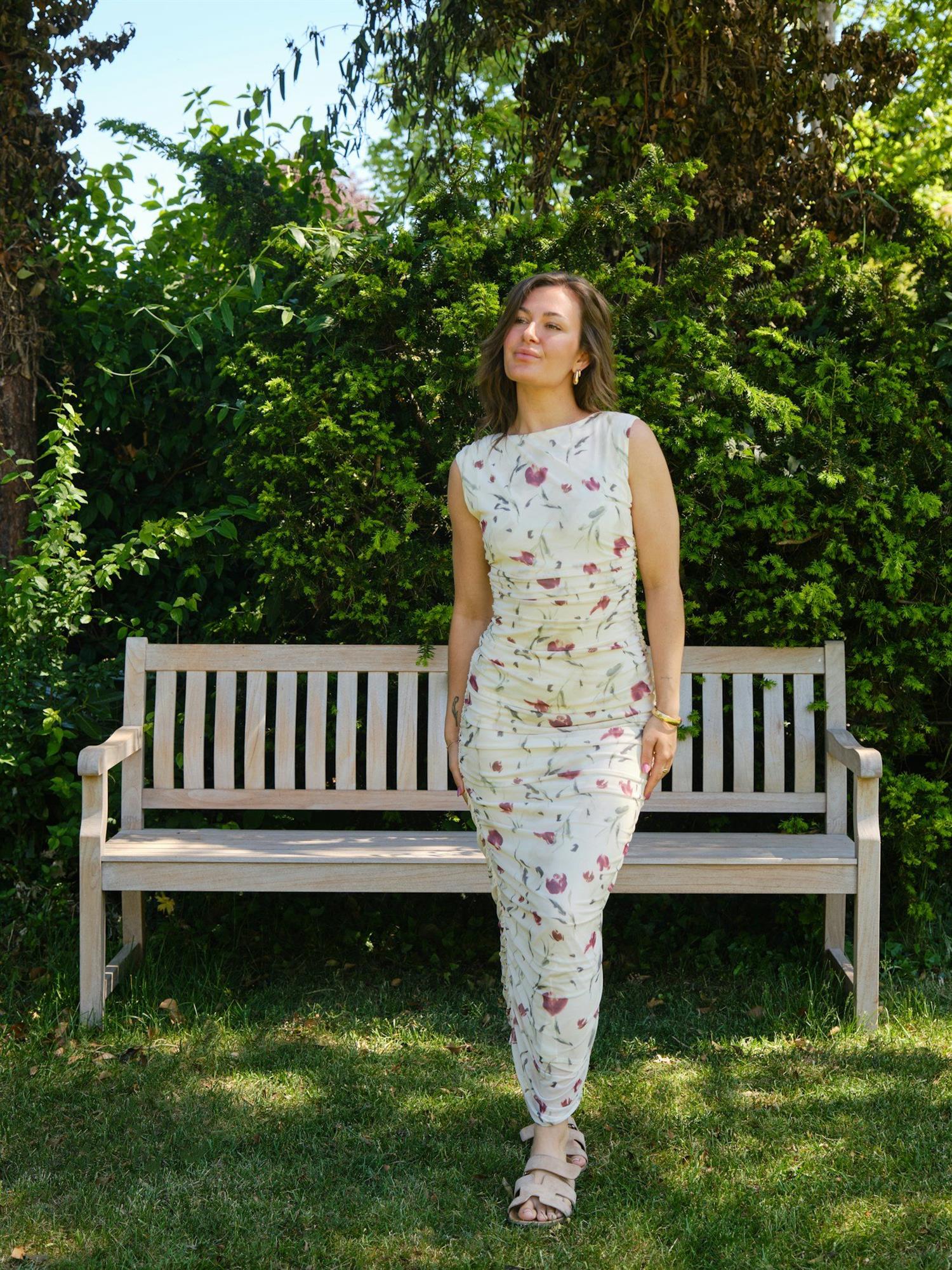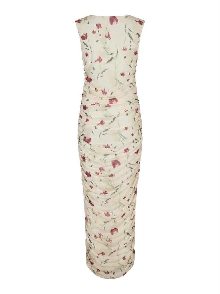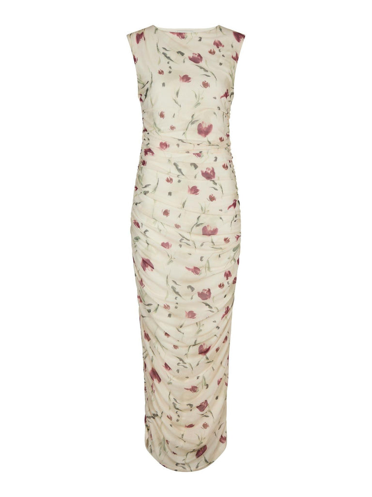 Lang meshkjole i et delikat, blomstrende print – perfekt til sommerens varme dager og lyse kvelder. Kjolen har smock-detaljer langs sidene som fremhever silhuetten på en flatterende måte. Den lette og elastiske kvaliteten gjør den både komfortabel og feminin.