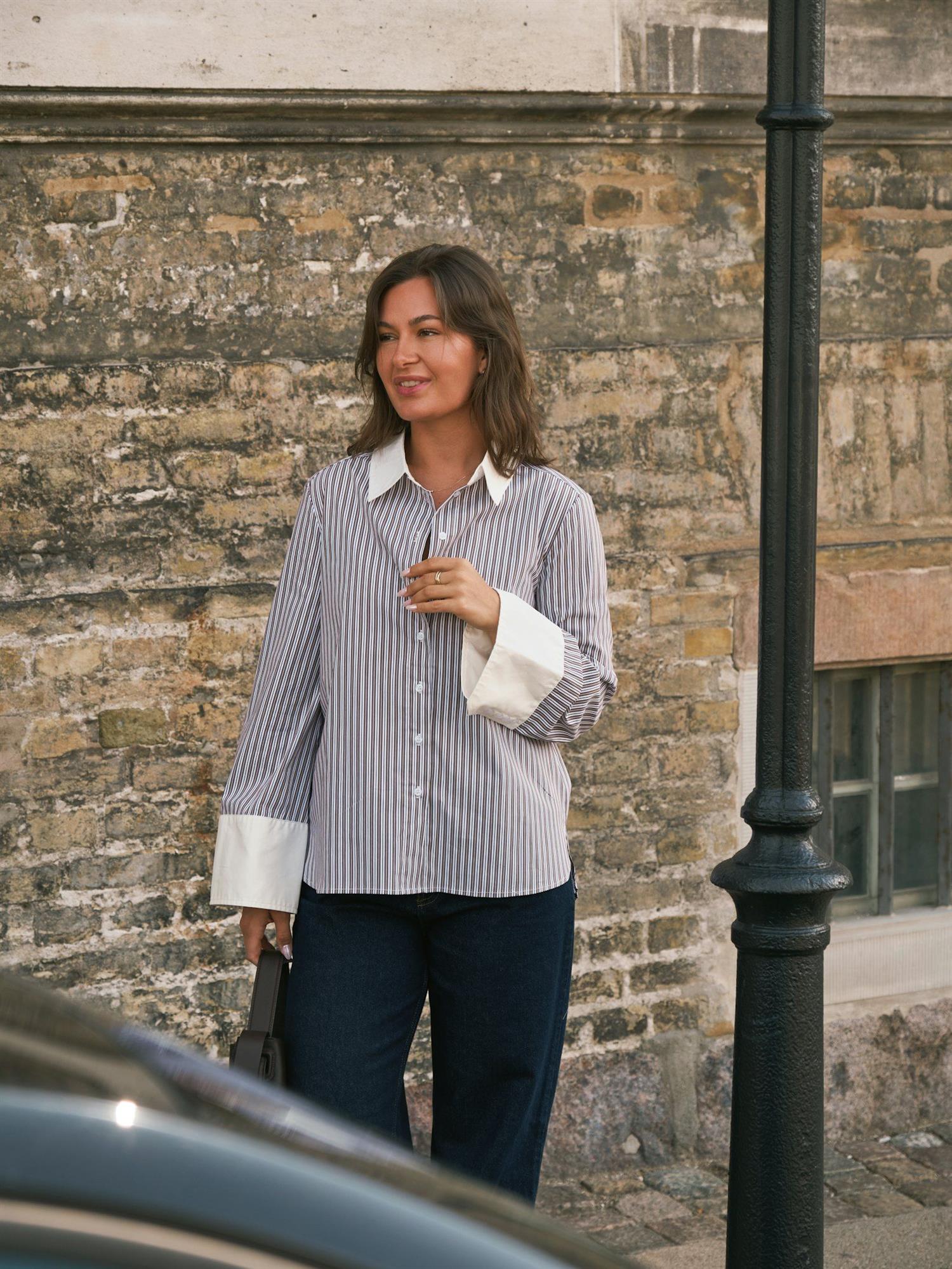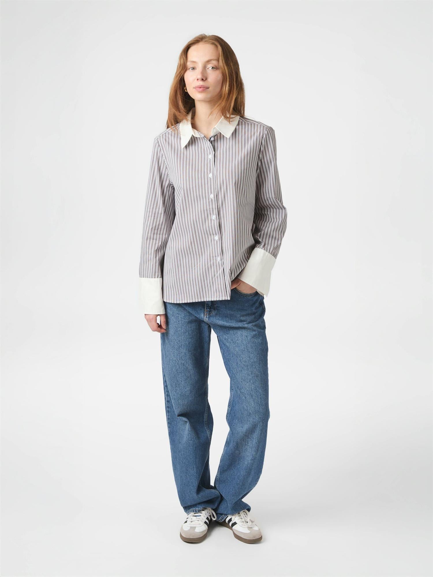 Dranila Stripe Shirt fra Neo Noir er en klassisk skjorte med en moderne vri. Den har et tidløst stripemønster, en rett passform og lette, strukturerte ermer som gir plagget en oppdatert og stilfull look. Skjorten passer like godt til kontoret som til en mer avslappet hverdag – style den med jeans, dressbukser eller skjørt etter anledning.