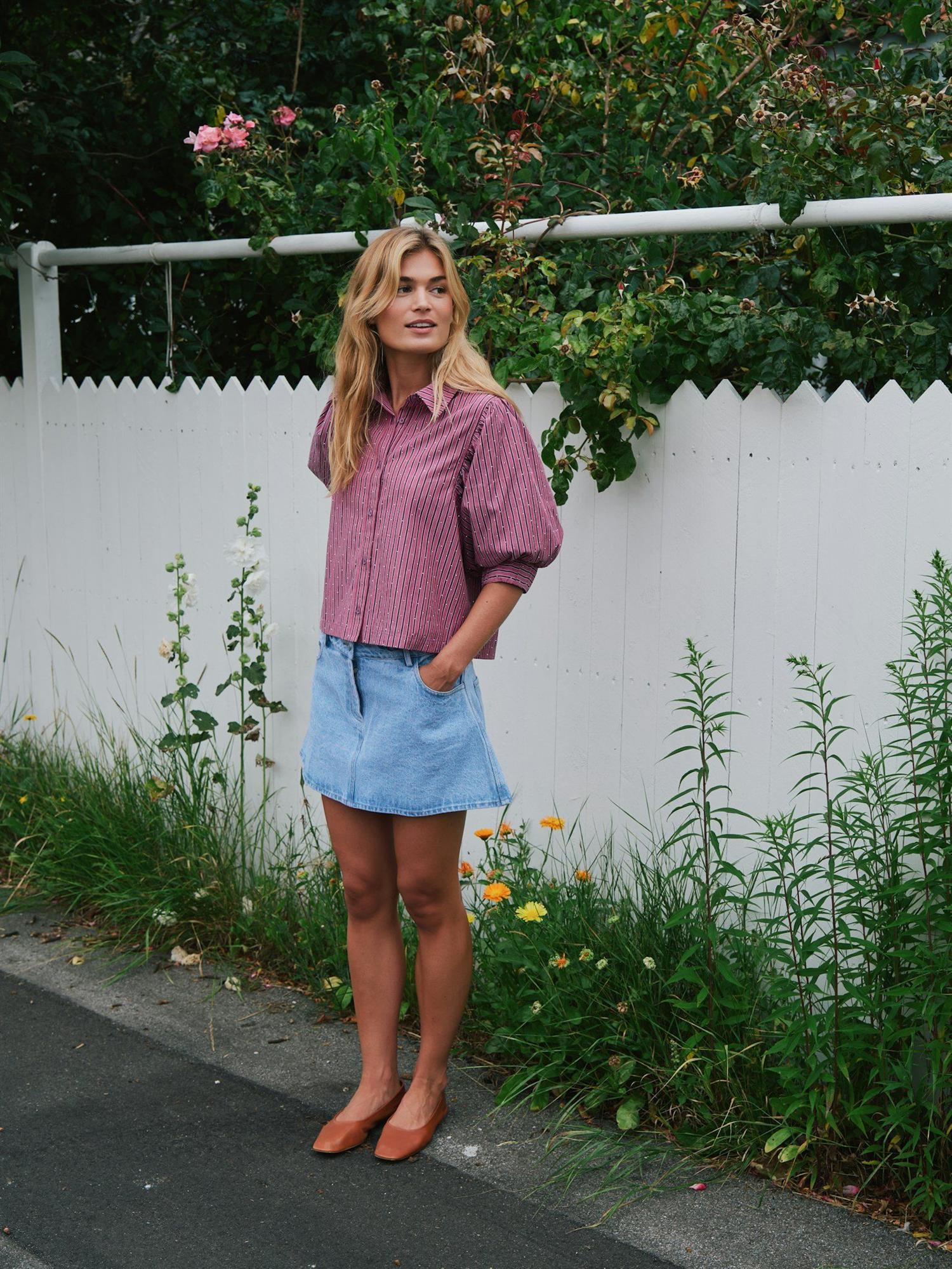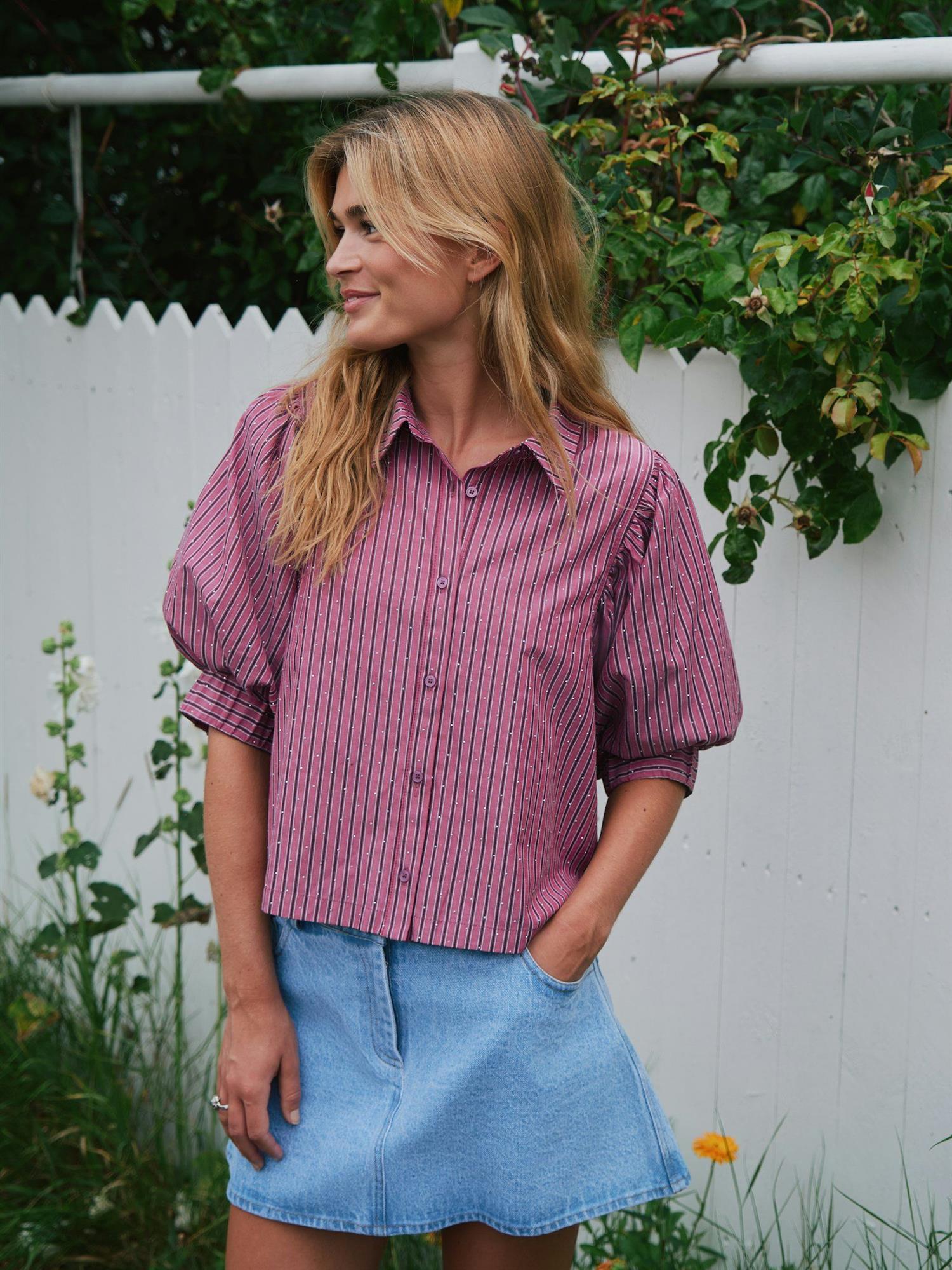 Neo Noir - Etta Soft Stipe Stone Shirt - Dark Rose