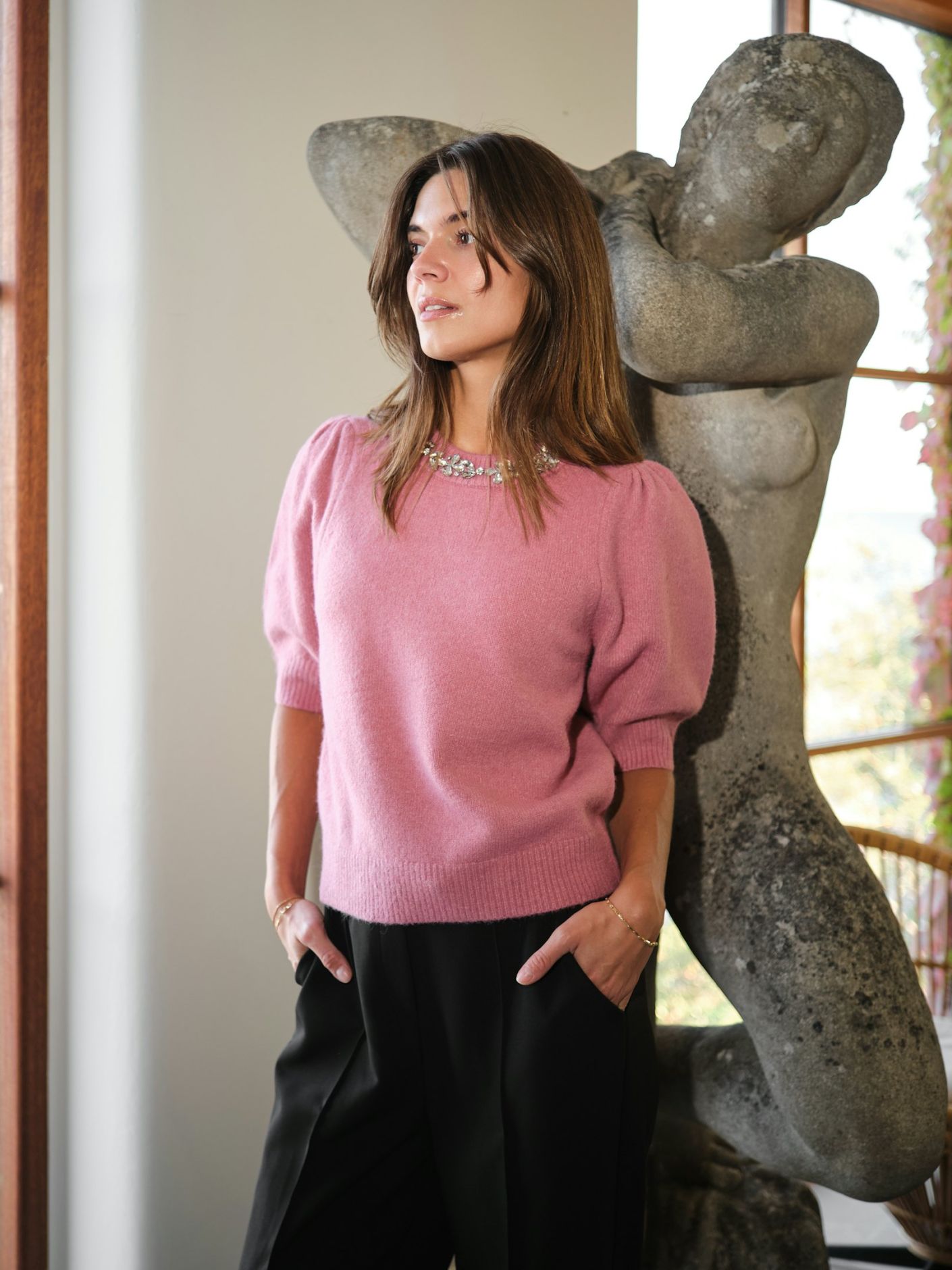Neo Noir - Maia Stone Knit Blouse - Rose