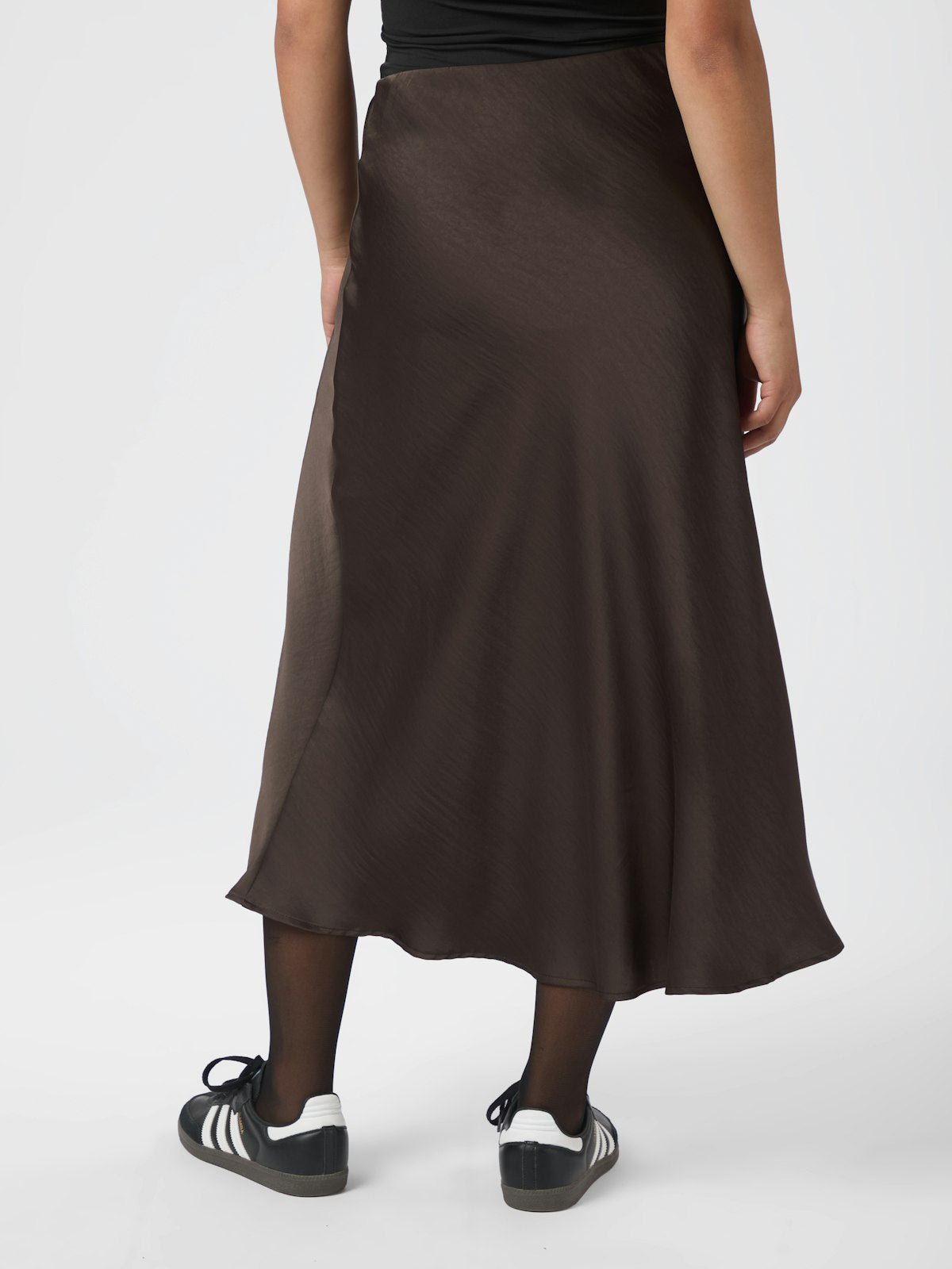 Bovary Skirt er en lang skjørt med en flatterende passform og elastikk i livet. Den er skåret på skrå og laget av en myk sateen-kvalitet som gir et elegant utseende.