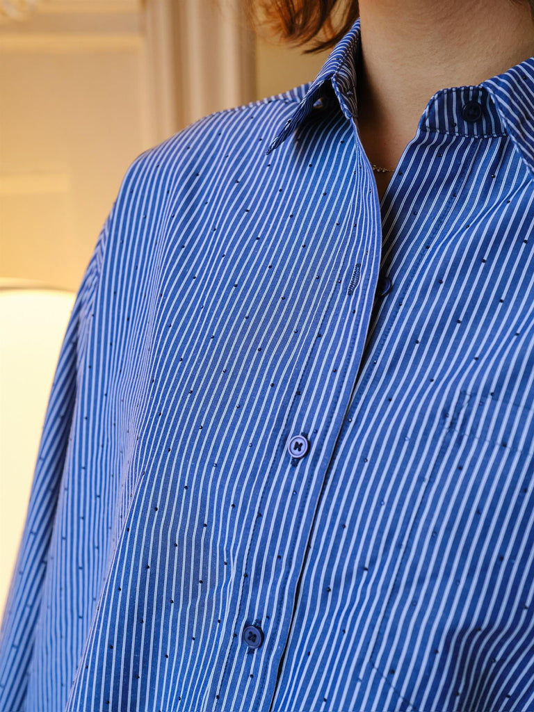 Dalma B Stripe Stone Shirt er en stilren og komfortabel skjorte i dyp midnight blue. Den perfekte skjorten for en avslappet, men likevel elegant look.