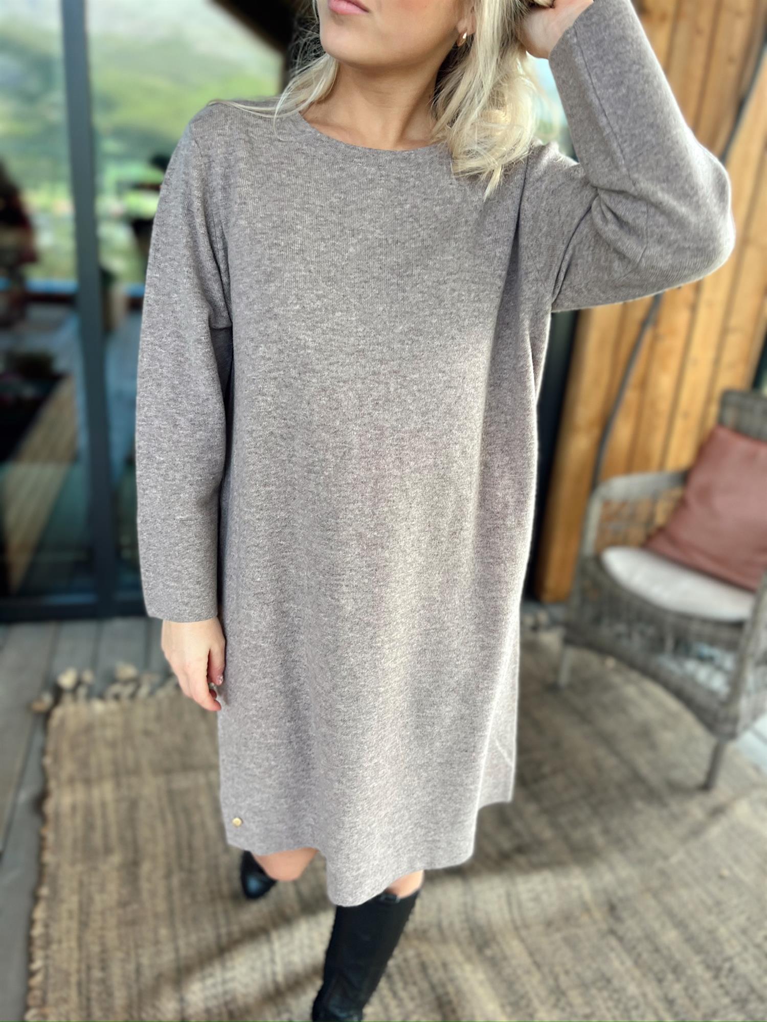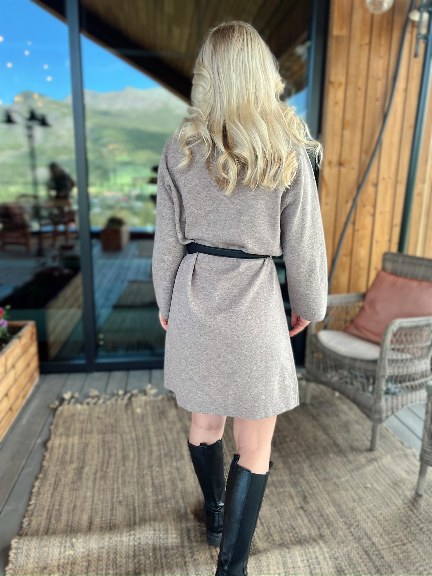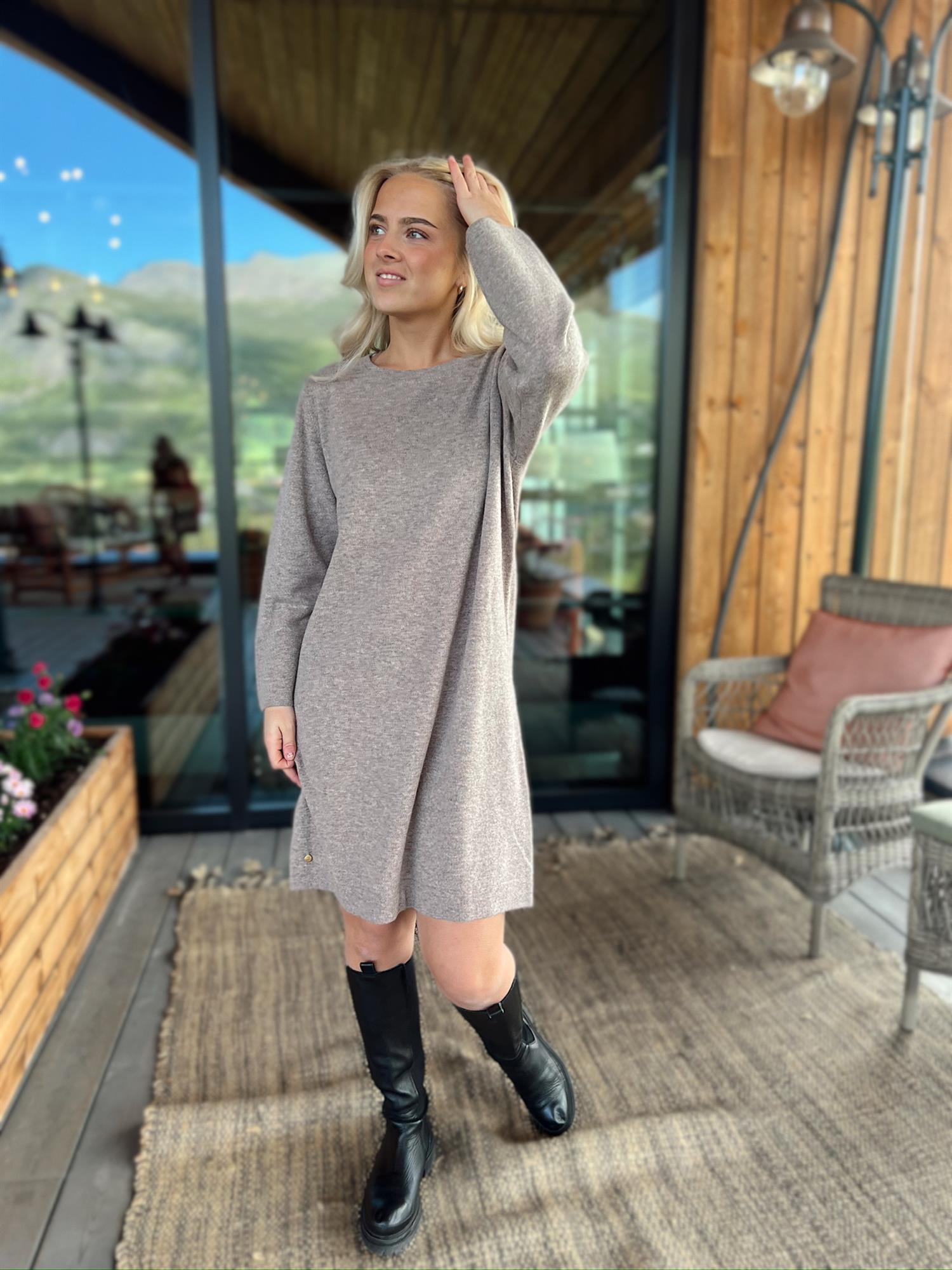 Maddie Round Neck Dress – En tidløs klassiker i 100% ull. Denne elegante kjolen med rund hals og lange ermer gir en myk og varm følelse, samtidig som den holder formen gjennom hele dagen. Perfekt til både hverdagsbruk og mer formelle anledninger, og lett å style med støvler eller pumps for et komplett uttrykk.