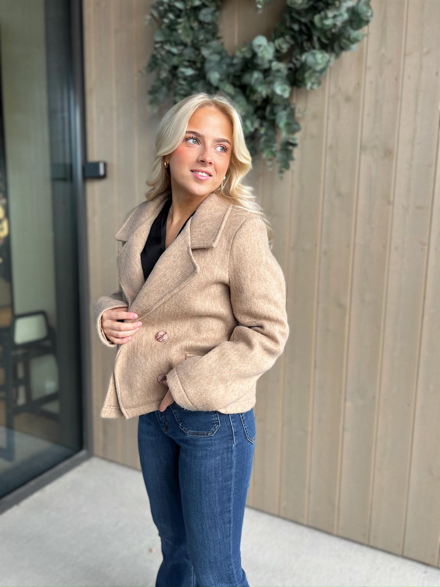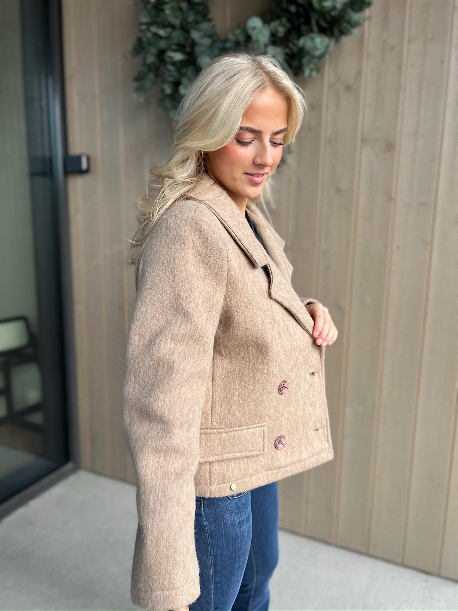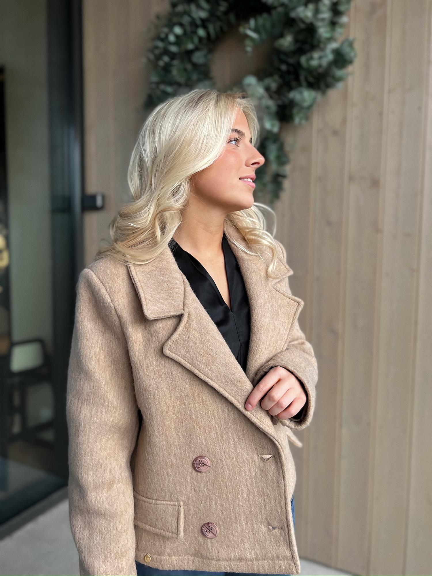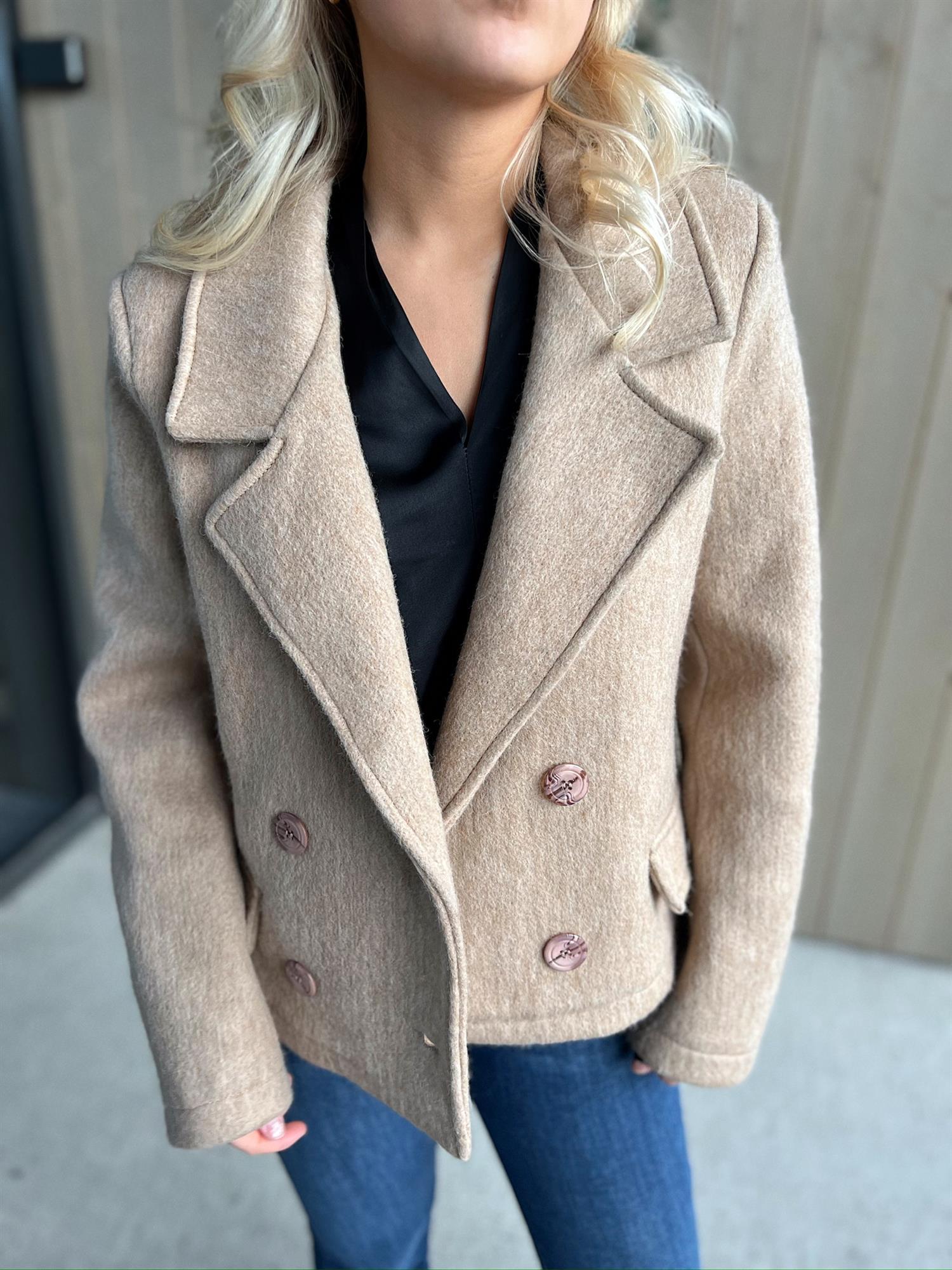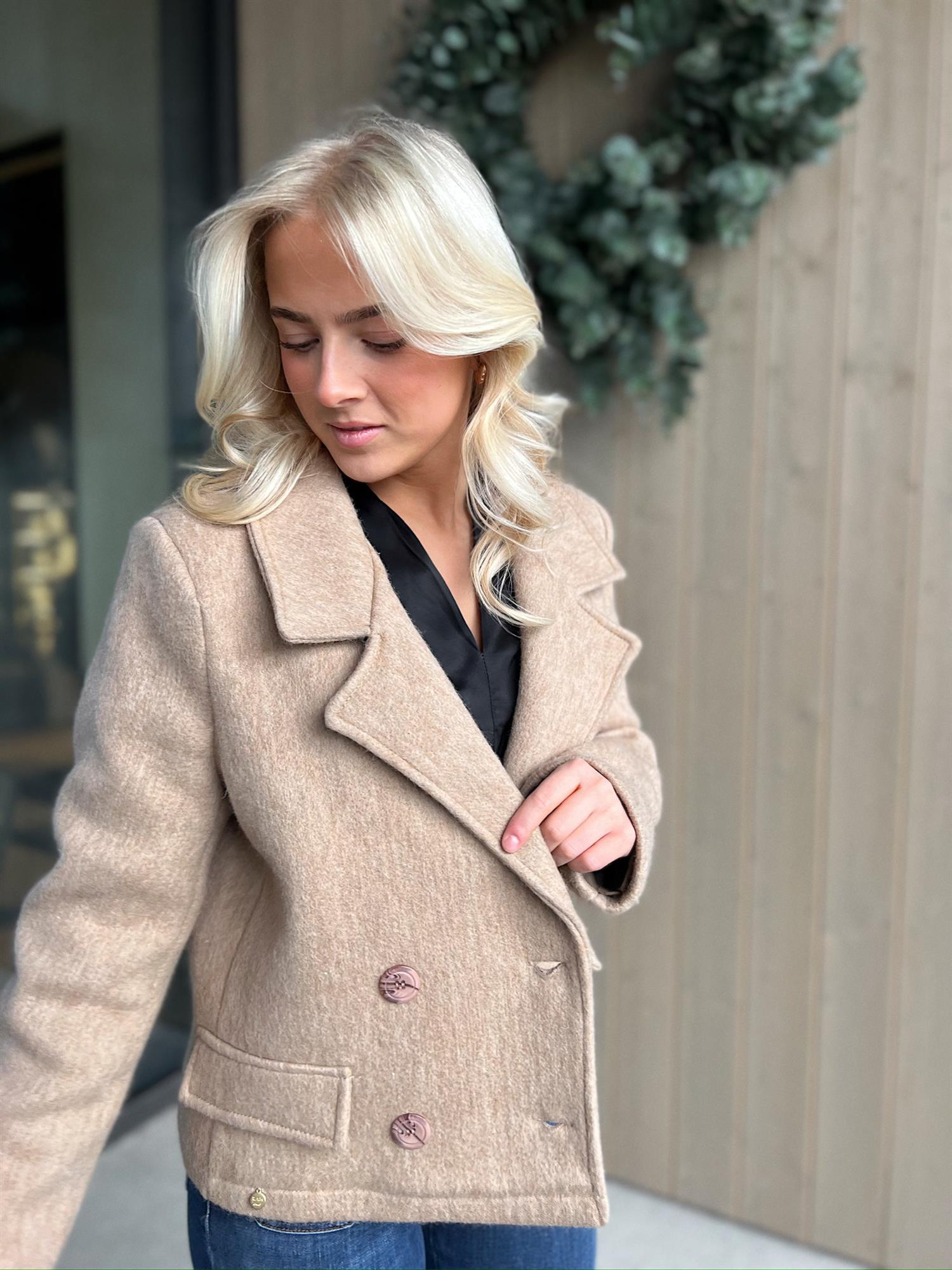 En chic og moderne kåpe i kort modell – perfekt når du ønsker et mer avslappet, men samtidig sofistikert uttrykk. Short Wool Coat har en feminin, rett fasong med klassiske slag og dobbelknepping som gir et tidløst preg. Den korte lengden gjør den lett å style både til bukser, skjørt og kjoler.
