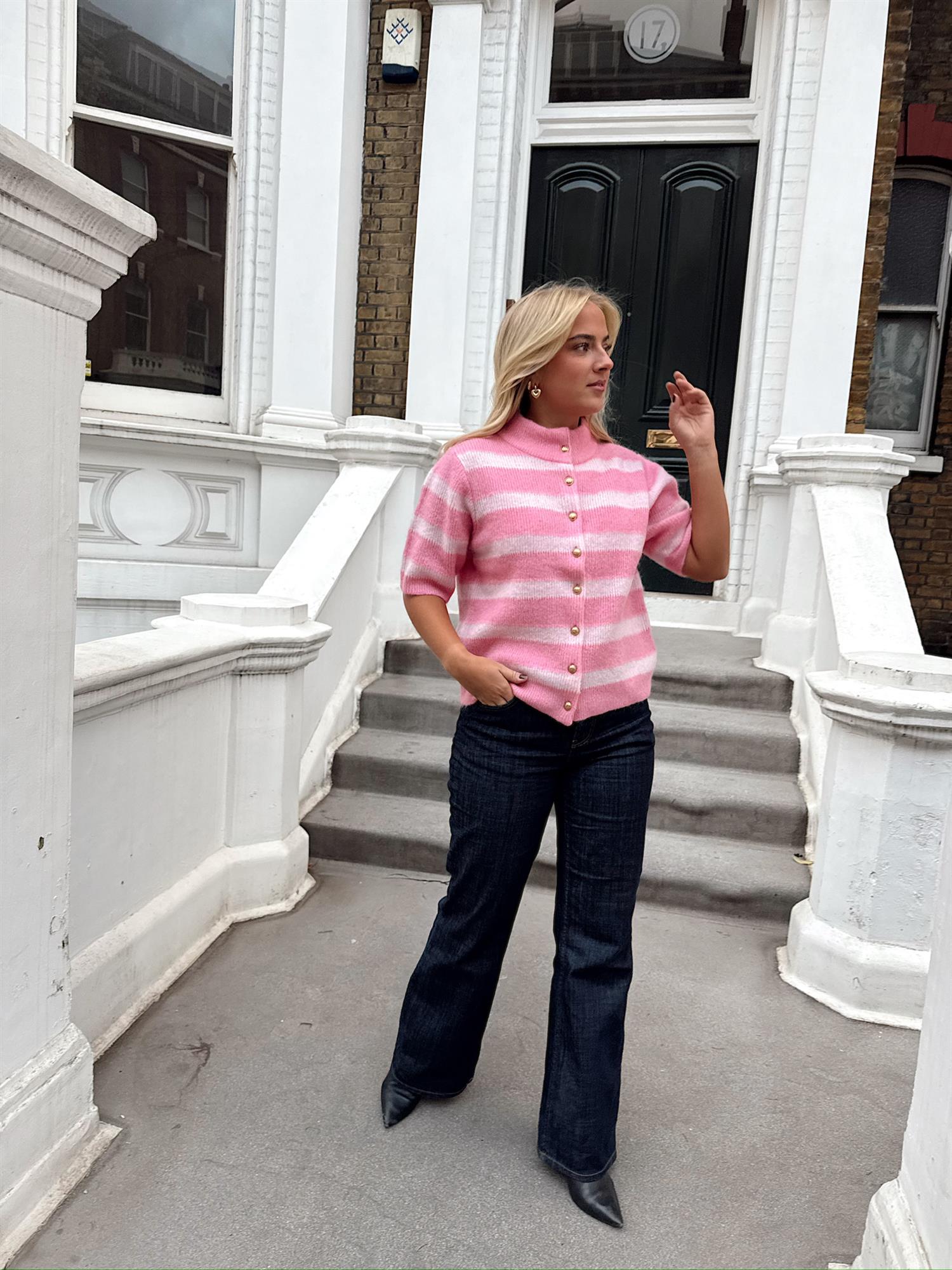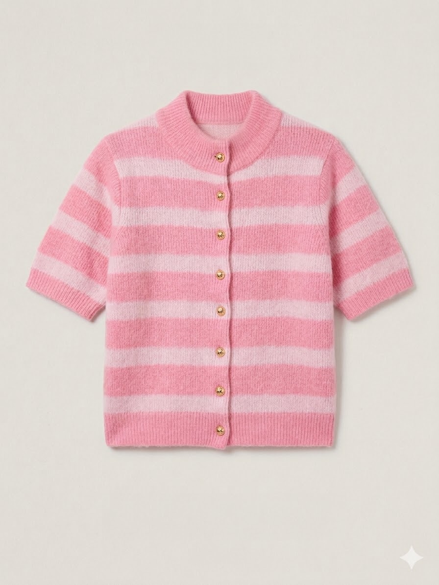 Rah Oslo - Short sleeve cardigan with buttons - Pink / Light Pink