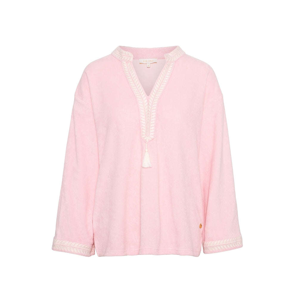 Toppen er like fin stylet til jeans for en casual hverdagslook, som til matchende skjørt eller shorts i samme frotté for et komplett sett. Myk, komfortabel og enkel å bruke – perfekt både hjemme og ute.