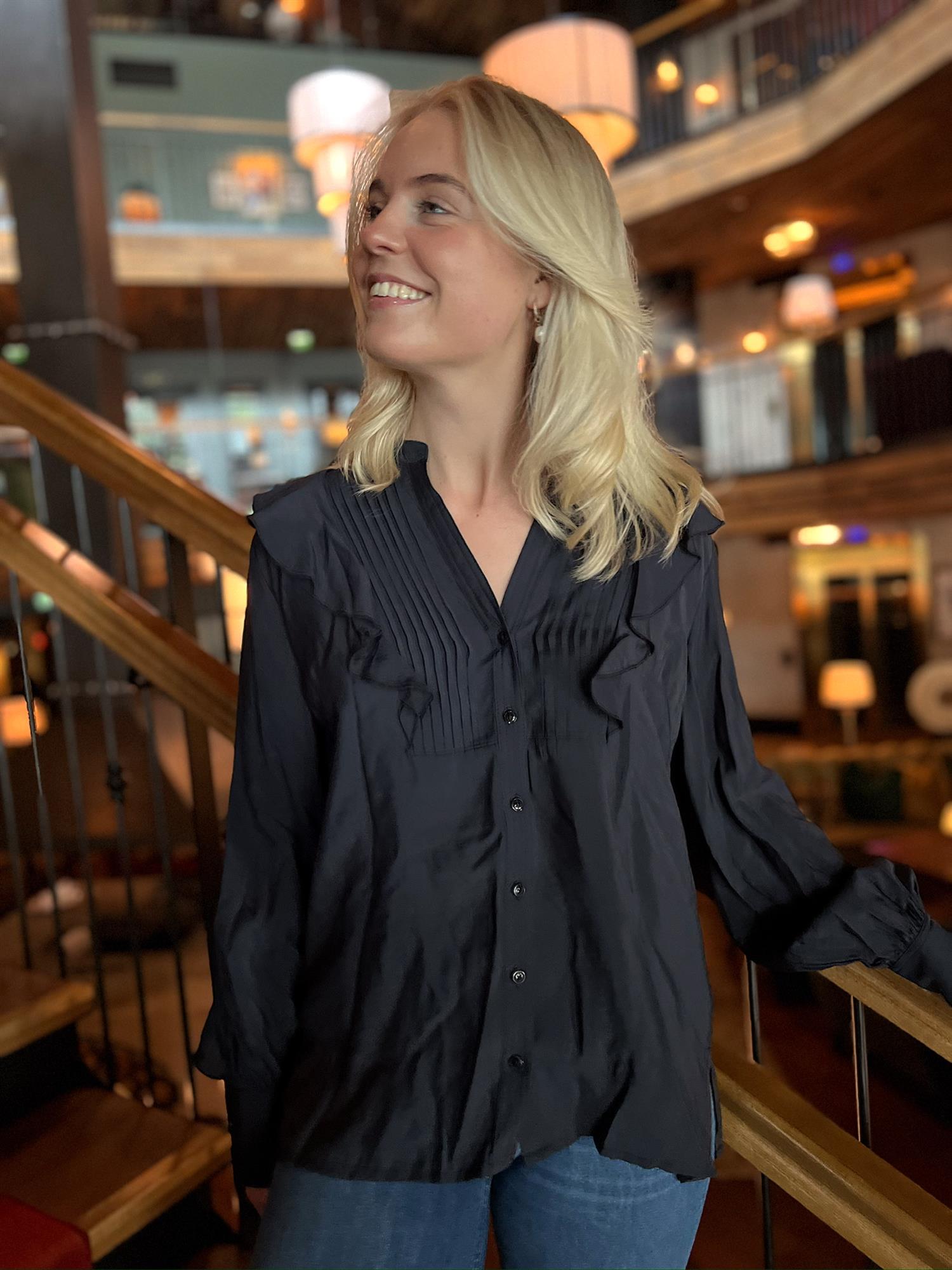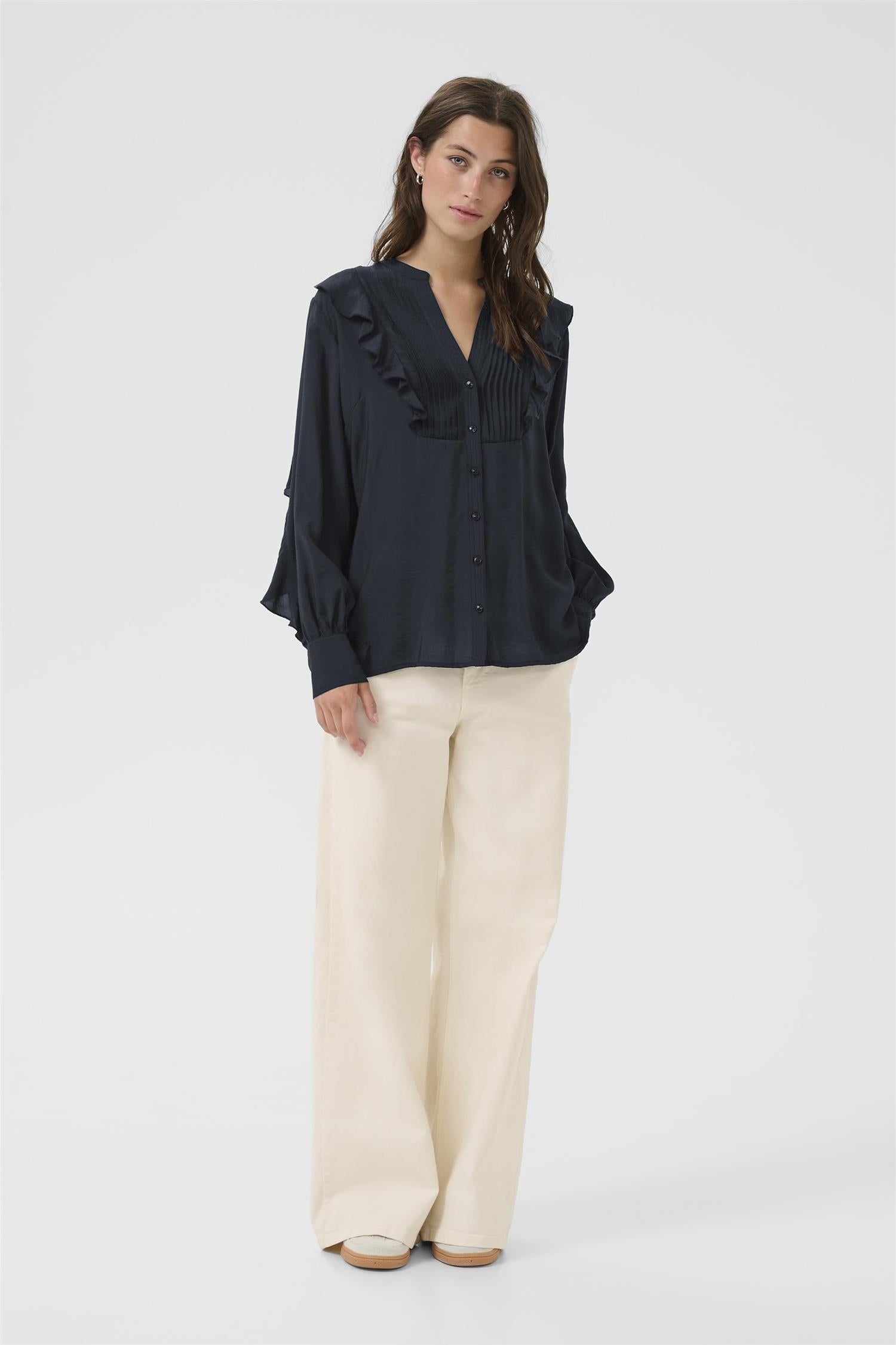 StefaniPW skjorten i mørk marine er et stilrent og bærekraftig valg for enhver garderobe. Laget av LENZING™ ECOVERO™ viskose, kombinerer denne blusen komfort med et moderne design, perfekt for både hverdagsbruk og spesielle anledninger.