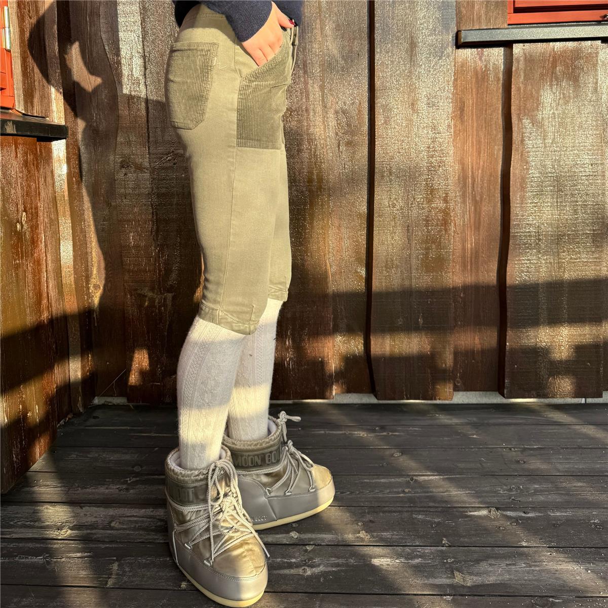Denne funksjonelle og stilrene nikkersen fra iSLOW kombinerer varme, komfort og et moderne utrykk. Buksen er sydd i en myk og fleksibel kvalitet bestående av 57 % bomull, 37 % CLY (lyocell), 4 % EME og 2 % elastan, noe som gir en perfekt balanse mellom pusteevne, slitestyrke og stretch.