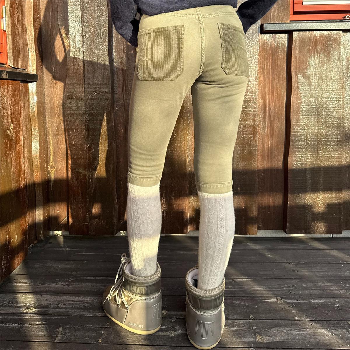De markante kordfløyelslommene foran og bak gir buksen et eksklusivt og teksturert preg. Passformen er kroppsnær og følger bevegelsene dine, mens den lekre knelengden gjør den ideell å style med varme sokker og vinterboots.