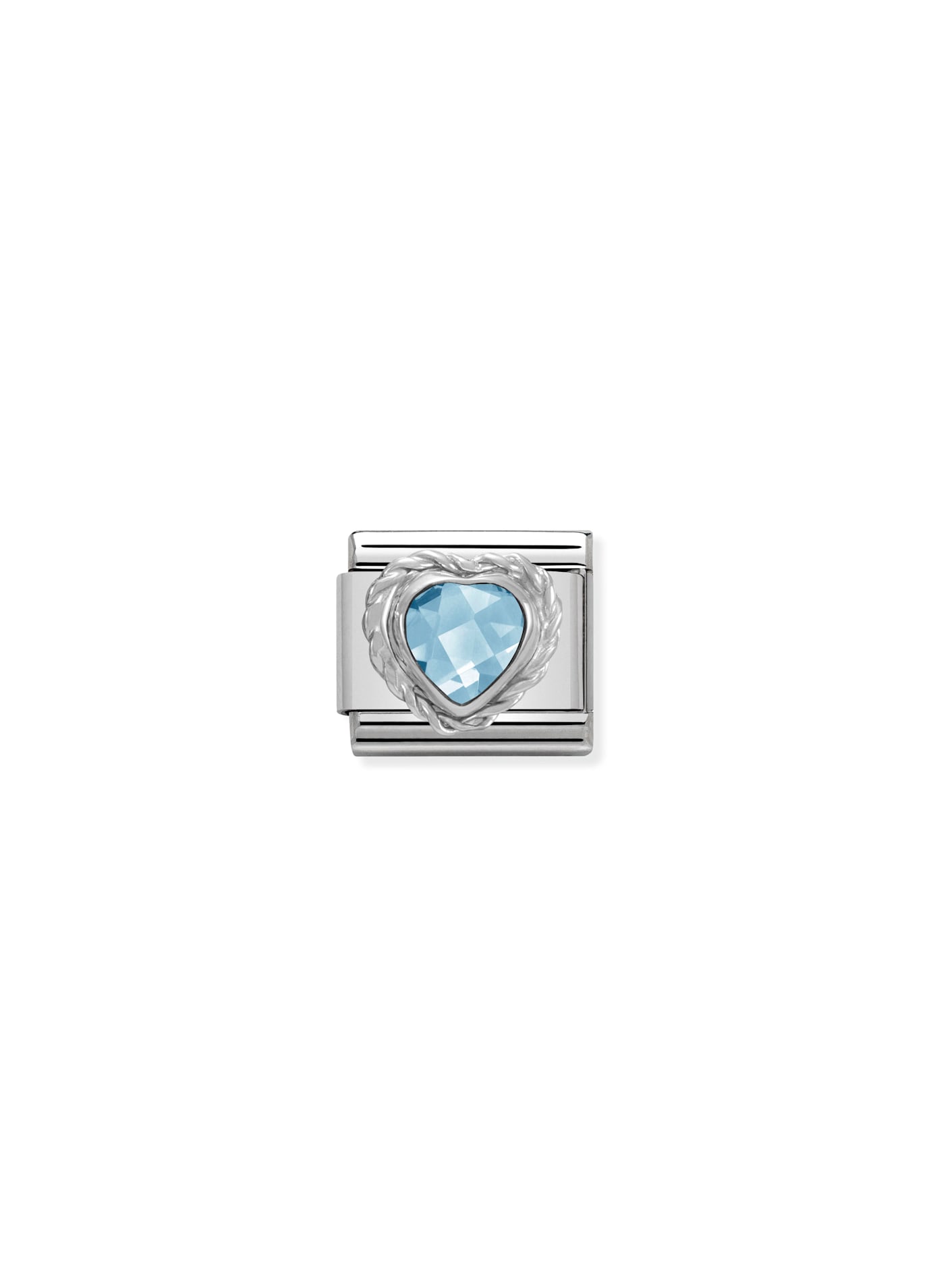 Nomination Italy - CL HEART FACETED CZ in stainless steel E 925 sterling silver twisted setting LIGHT BLUE / Hjerte Blå - Stainless Steel