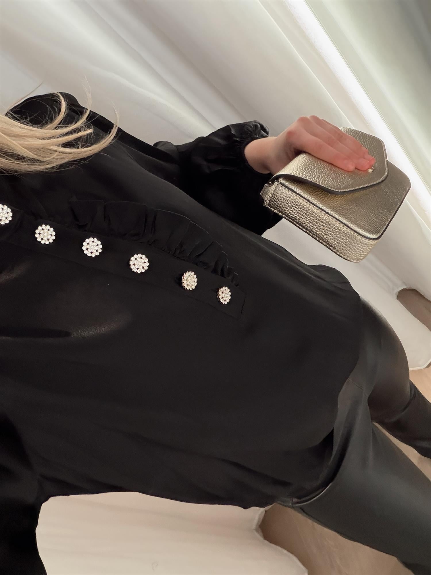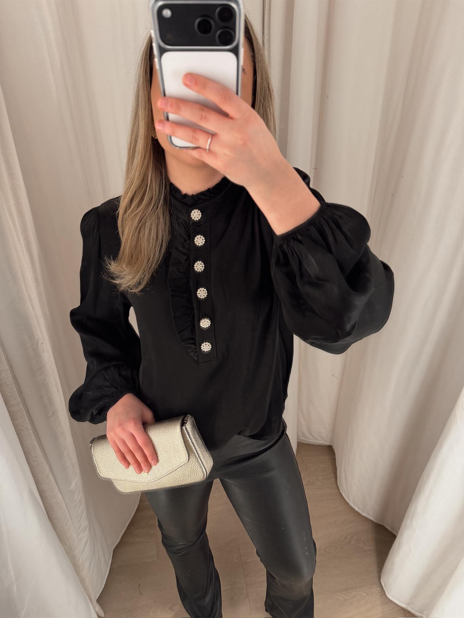 Rah Oslo - Solid Sateng Blouse w/ Buttons - Black