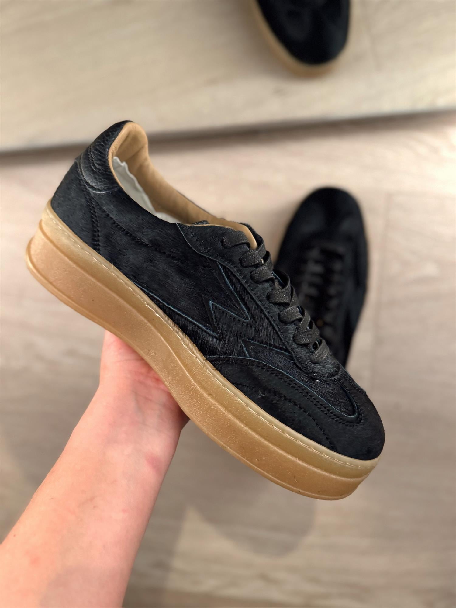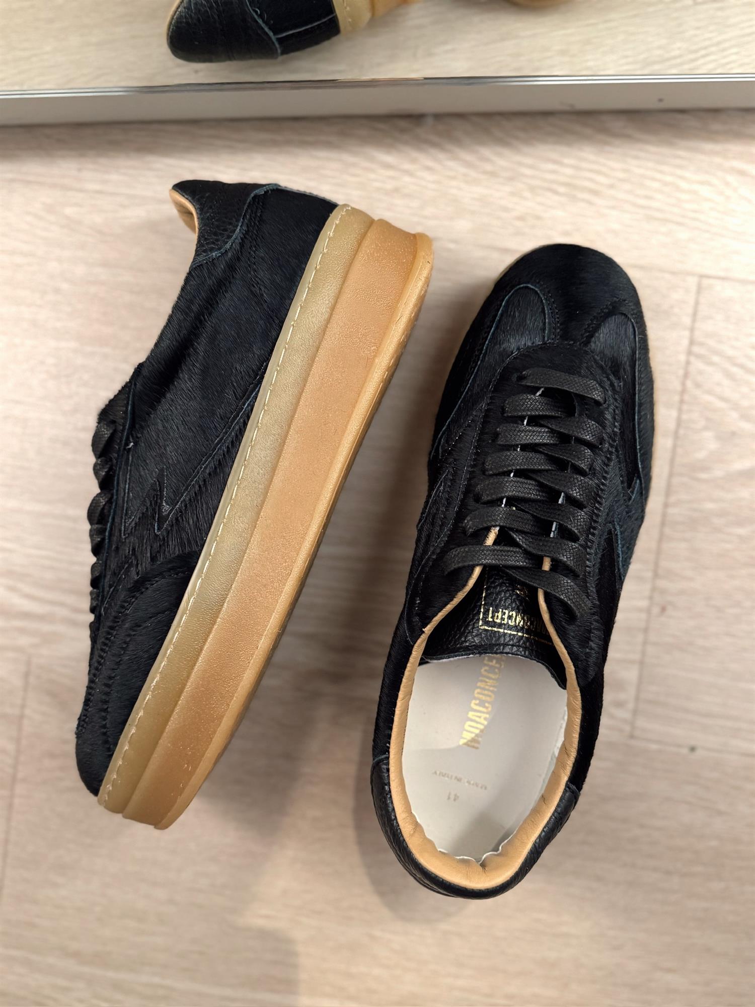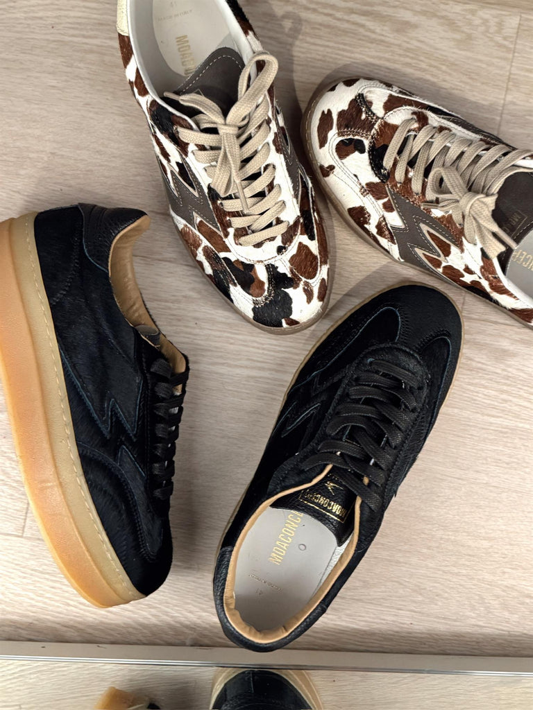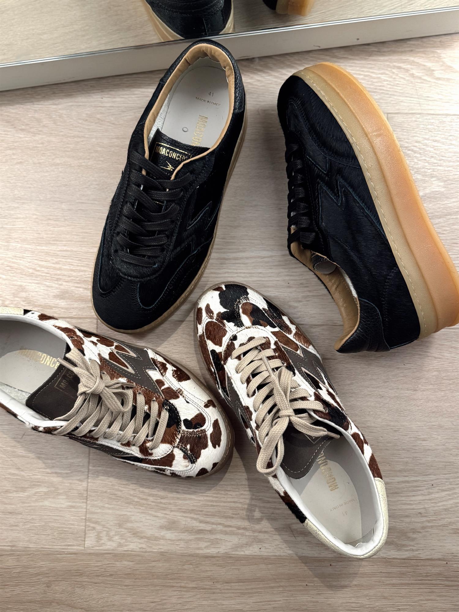 Dette er superkule sneakers fra Moa Concept med et iøynefallende leopardmønster i ponnihår og en trendy platåsåle som løfter hele antrekket. De myke, lyse gummisålene gir god komfort gjennom hele dagen, samtidig som skoene er laget med solide kvaliteter.
