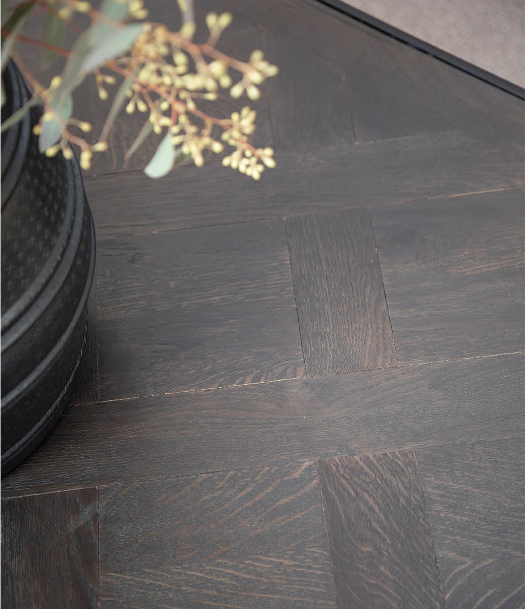 Sofabordet Pittsburgh gir et tidløst og sobert inntrykk. Fineren er i fargen US Brown, som gir et muggent mørkebrunt inntrykk, treverket er behandlet med voks. Pittsburgh finner sted, men smelter samtidig inn i de fleste stiler. Det tynne, matte sorte metallet og den innfelte eikefineren i parkettmønster er en uvanlig vellykket kombinasjon.
