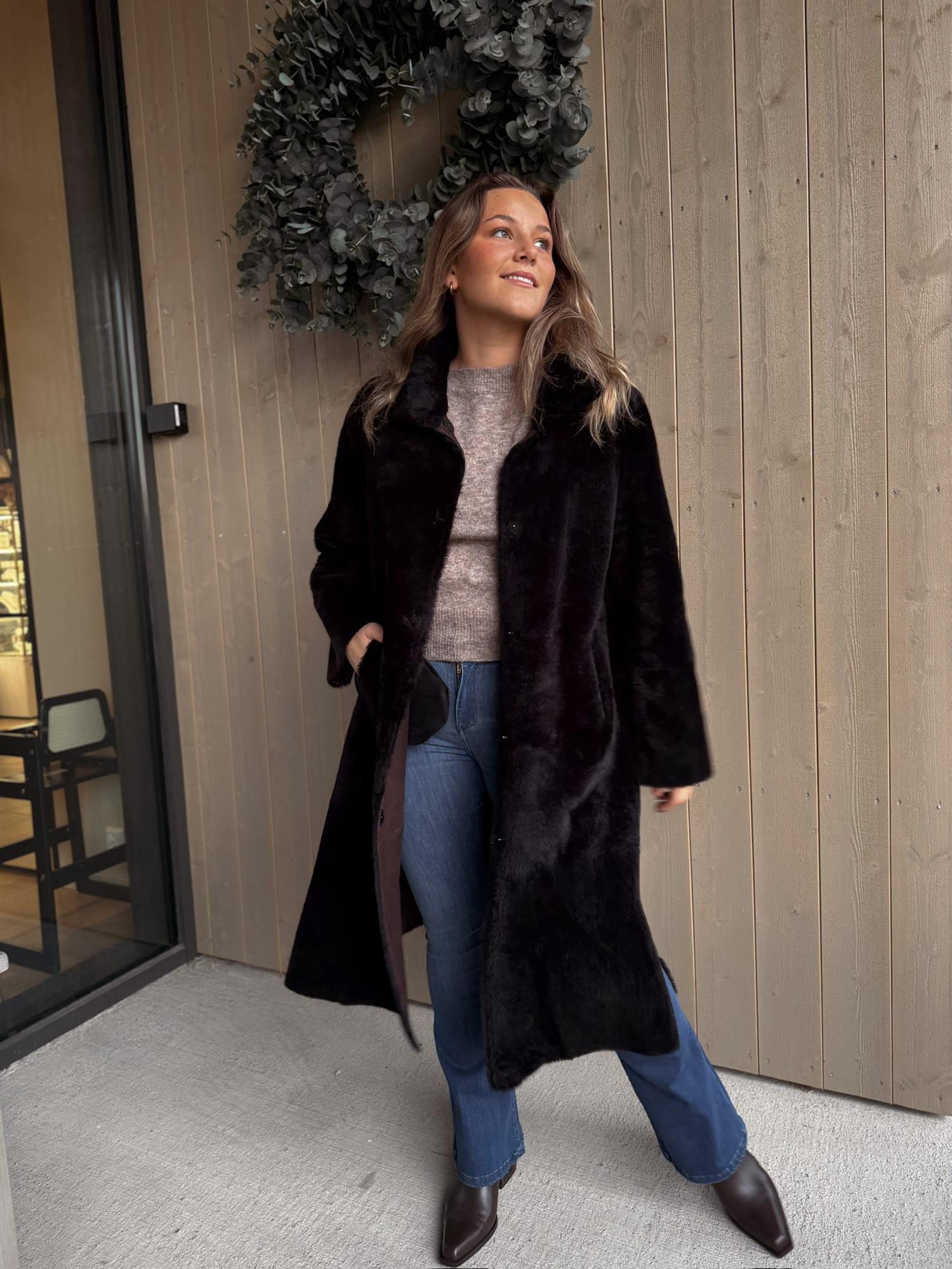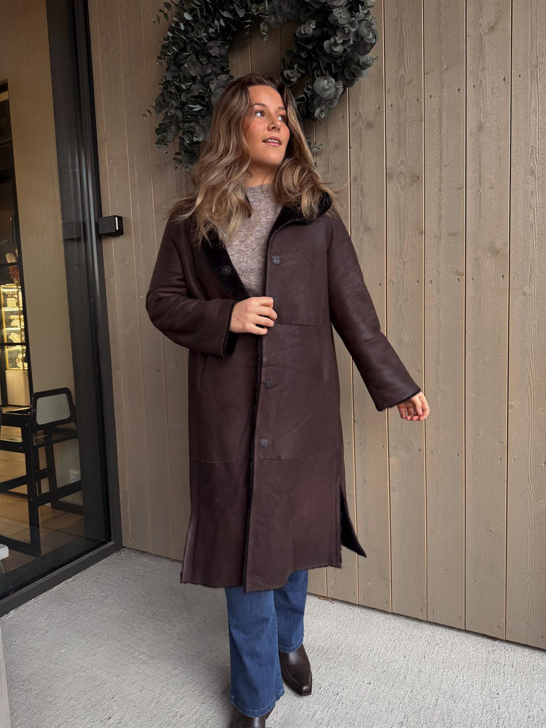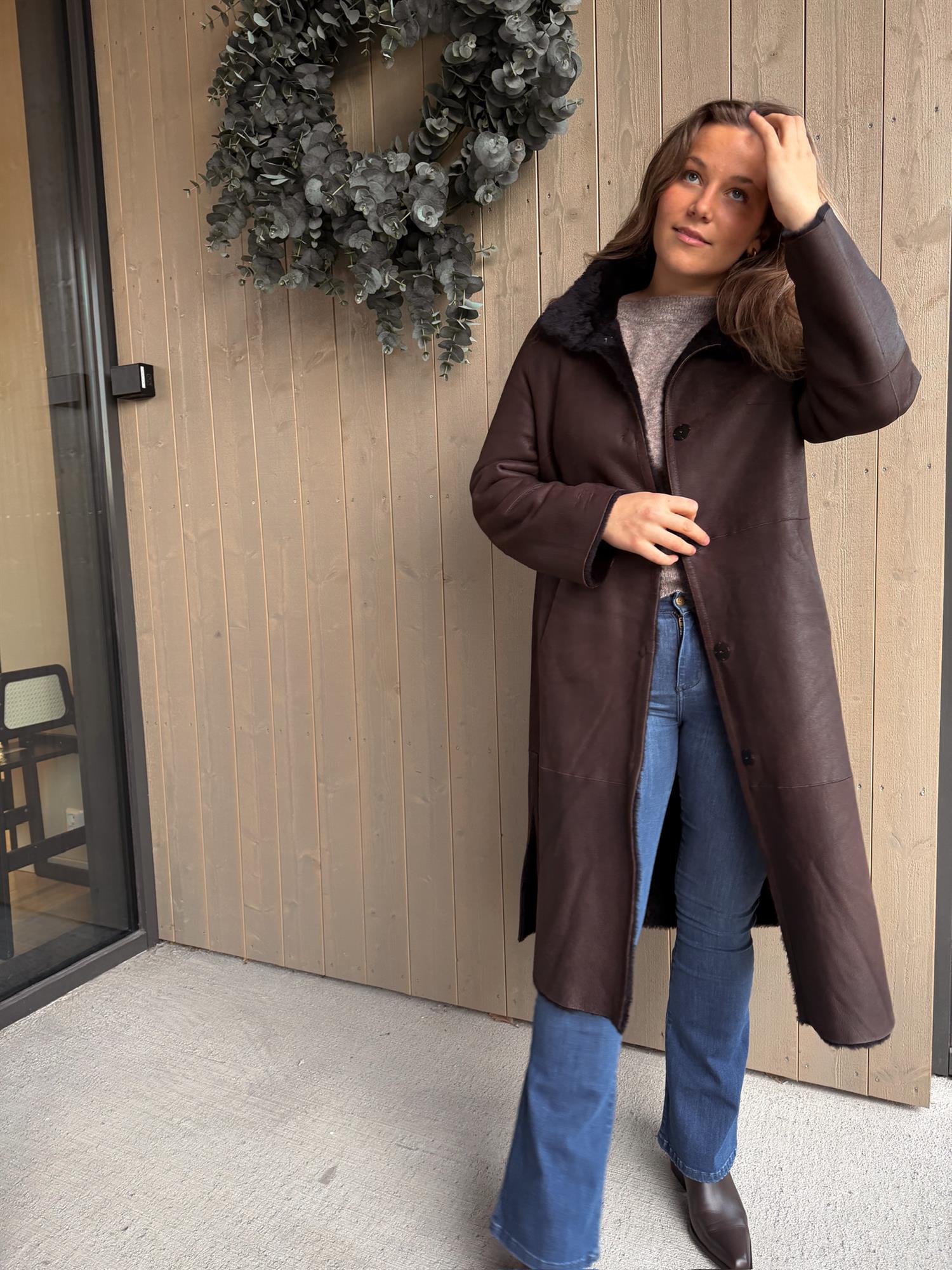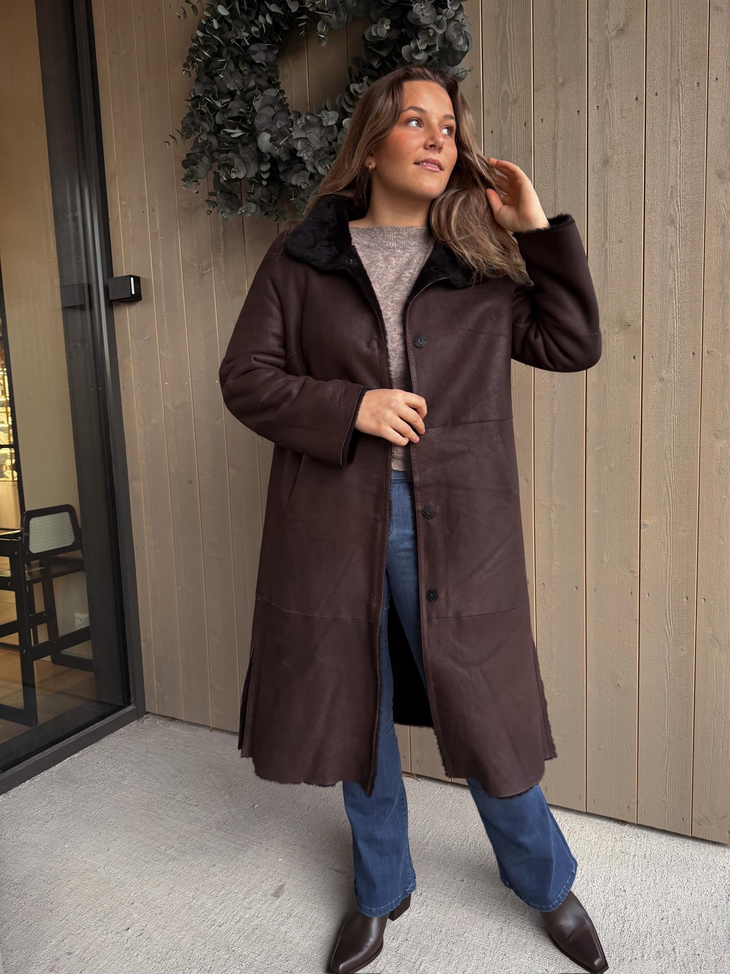Denne holder deg varm og god sesong etter sesong. Modellen er 170 cm høy og har på seg størrelse 38. Normal i størrelsen.