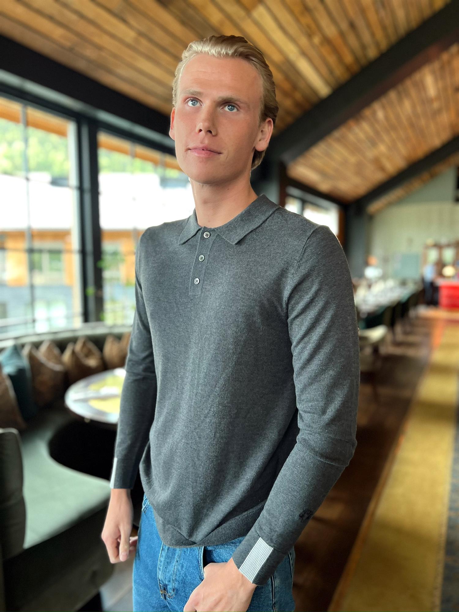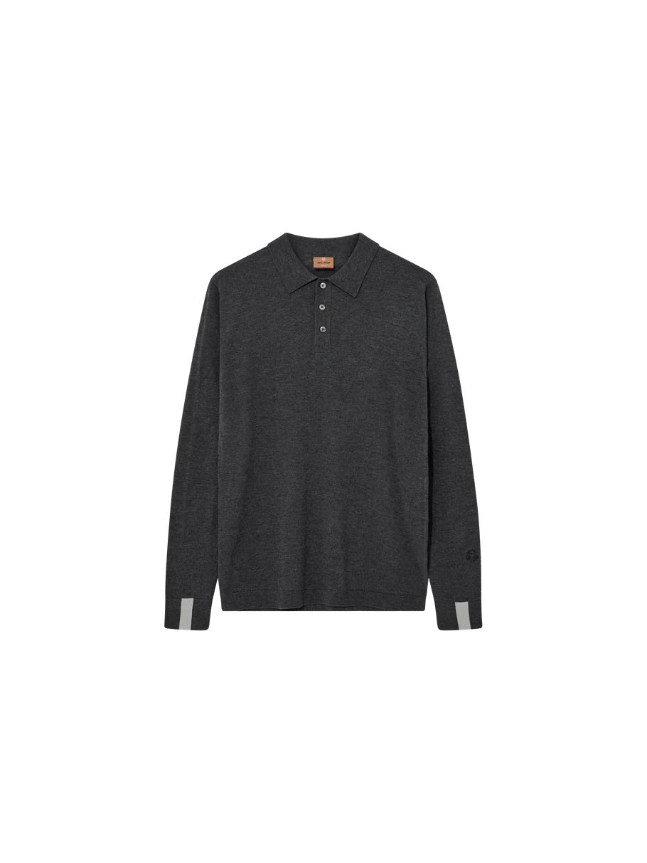 Mos Mosh Gallery - Mmg Adam Soft Lspolo Knit - Charcoal Melange