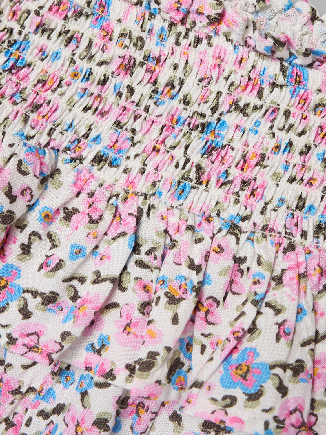 Tilfør lys og farge til barnets garderobe med fantastiske vår- og sommerstyles som sikrer bevegelsesfrihet og en stilig look. Vevd stoff har et tydelig kryssmønster og en lett strukturert overflate for et rent og klassisk look. - Produkttype : Skjørt - Detaljer : Smock-detalj, Rysjedetalj - Mønster : Printet er gjentatt over hele overflaten av produktet
